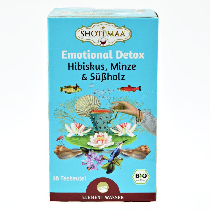 Lo Shoti Maa Tea Emotional Detox è dedicato all'elemento acqua. Assapora l'ibisco, la menta e un pizzico di basilico.