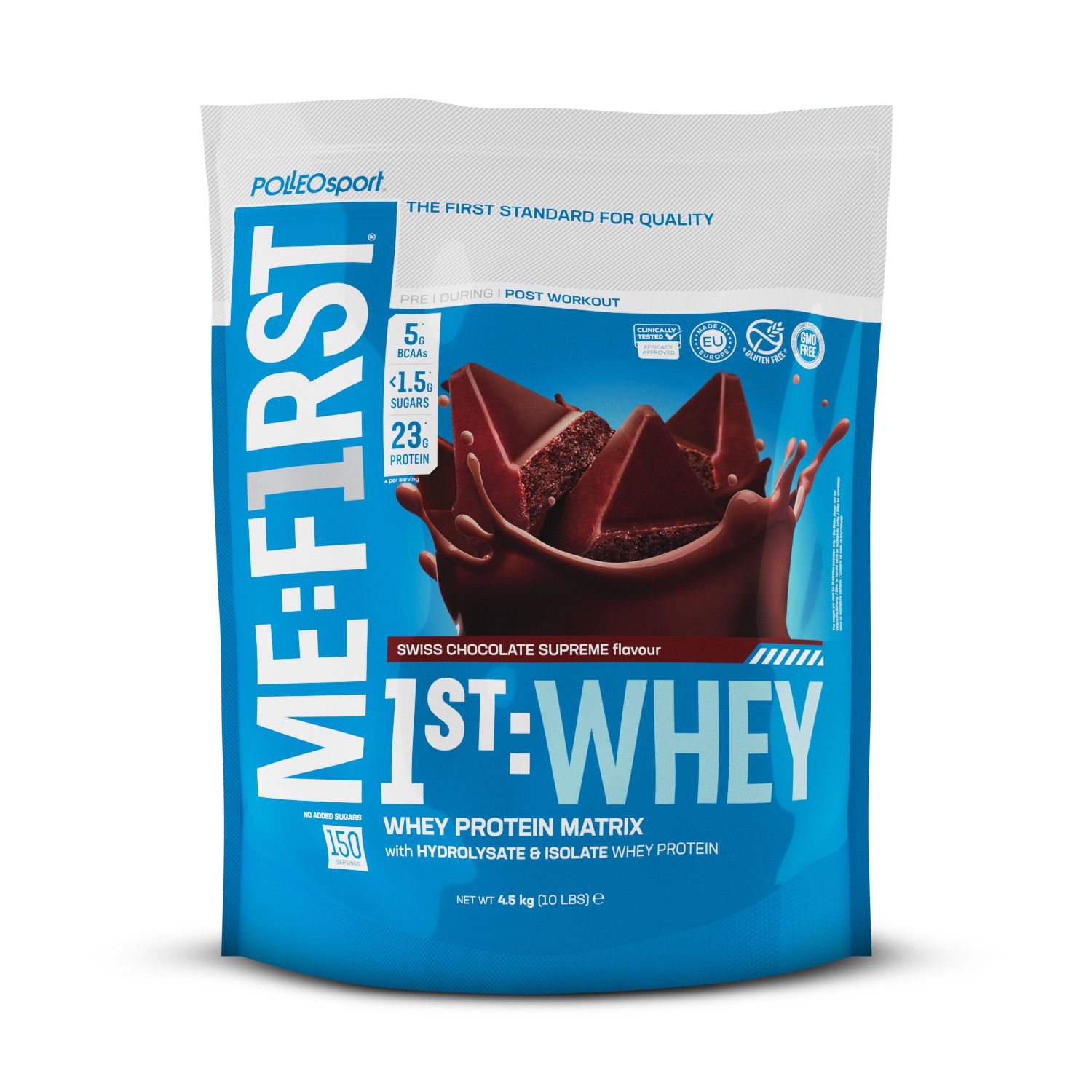 1st Whey Protein, dalla linea di prodotti Me:First, è uno dei prodotti più avanzati nel campo della nutrizione sportiva, disponibile presso Polleo Sport, grazie alla sua nuova formula proteica. Per un perfetto mix, la formula proteica è arricchita con aminoacidi essenziali, BCAA e L-Glutammina. Questa formula proteica è stata sviluppata e raccomandata da nutrizionisti per tutte le persone attive nel campo dello sport che cercano il miglior prodotto per la costruzione efficace dei muscoli.