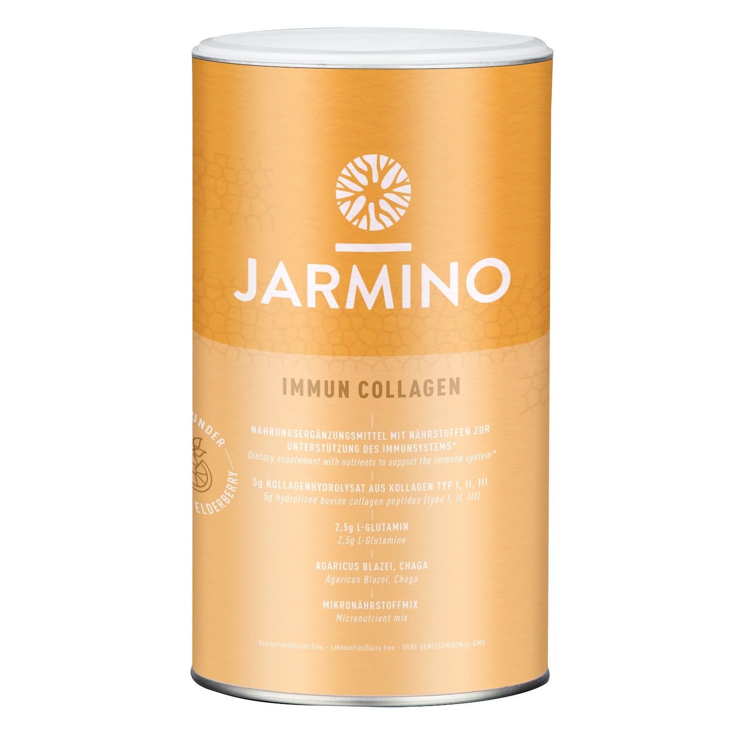 Il nostro JARMINO Immune Collagen è un integratore alimentare naturale con collagene, vitamine, minerali e sostanze nutritive sviluppato per il consumo a lungo termine. Prendi circa 15 g (1 cucchiaio colmo) di polvere facilmente solubile ogni giorno. Una lattina da 450 g dura 1 mese.