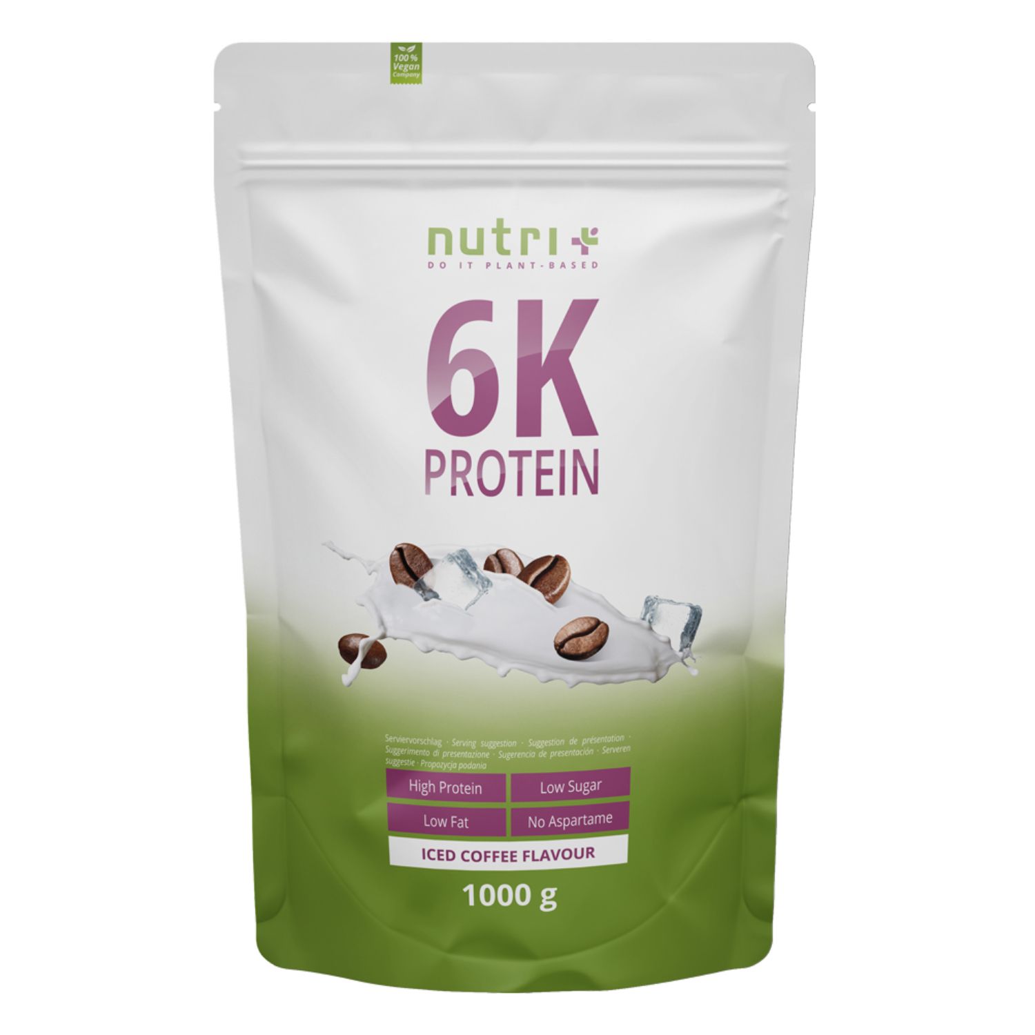 nutri+ 6K Protein è una proteina multicomponente di origine vegetale e consiste in oltre l'80% di proteine (proteine isolate della soia, proteine isolate del pisello, proteine del riso, proteine del girasole, proteine delle mandorle e proteine del grano).