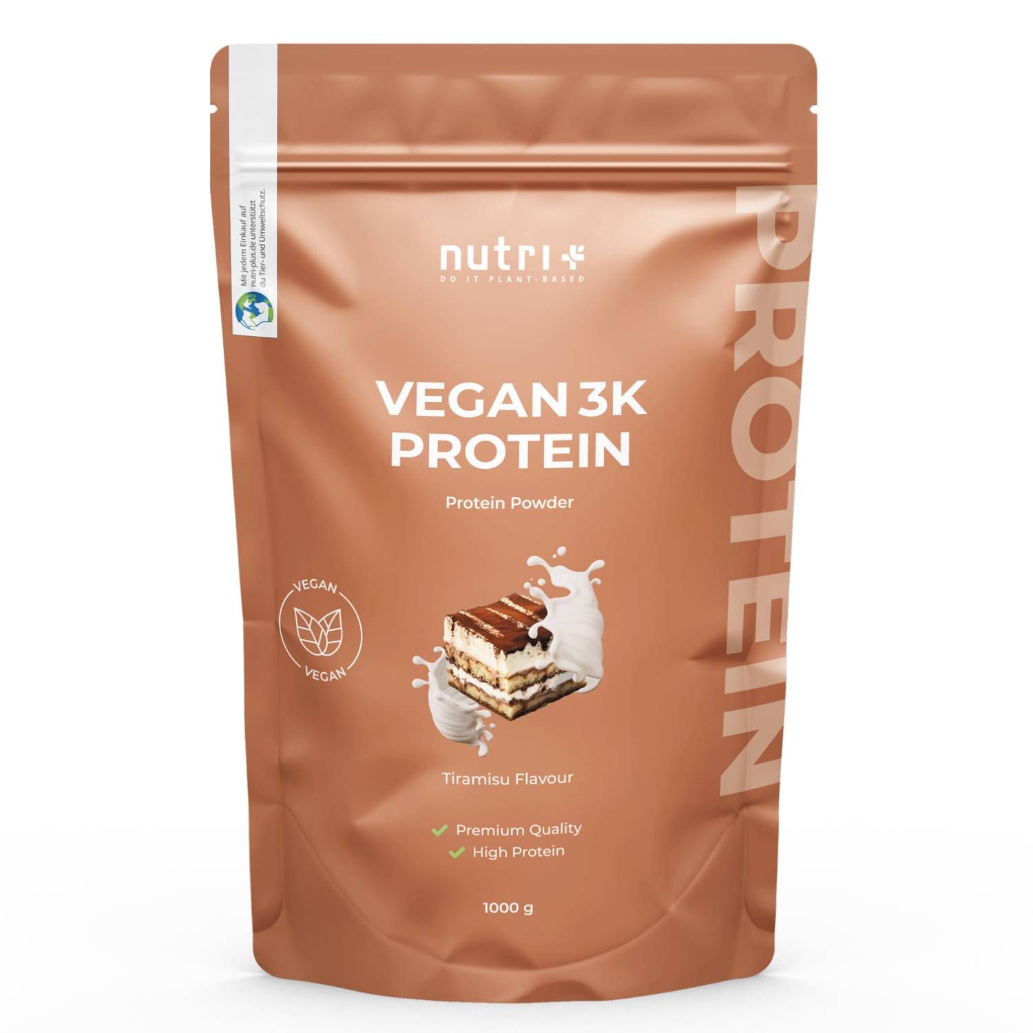 nutri+ Vegan 3K Protein è una proteina vegetale a più componenti ed è composta per oltre l'80% da proteine (isolato di proteina di soia, isolato di proteina di piselli e proteina di girasole).