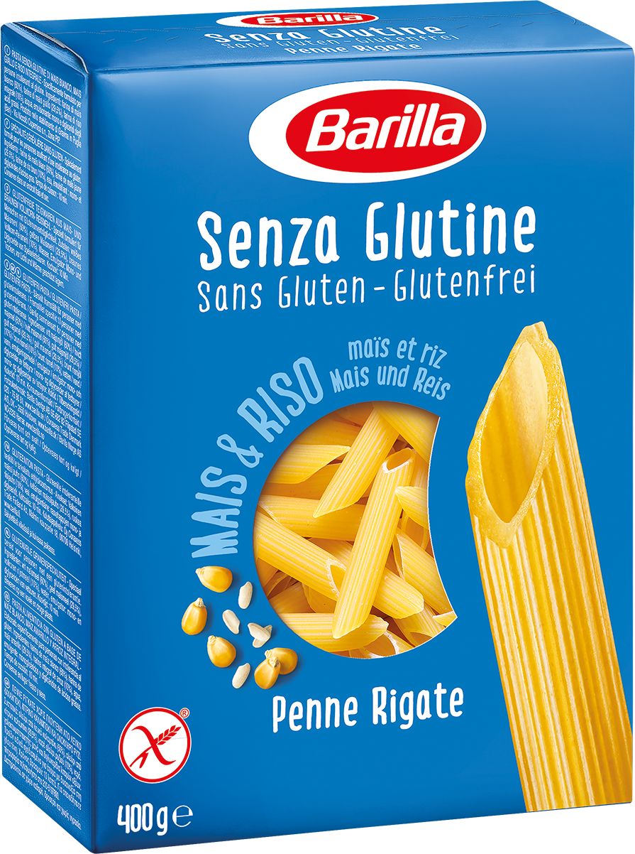 Rinunciare al glutine non significa rinunciare al piacere della pasta!Le Penne Rigate senza glutine Barilla sposano il tradizionale taglio obliquo "a pennino" con un gusto bilanciato e sono ideali con sughi dai sapori delicati.Grazie alla nuova ricetta con riso integrale, da oggi le Penne Rigate senza glutine offrono un gusto ancora più armonioso e bilanciato, per una pasta senza glutine finalmente buona come la Barilla di sempre.