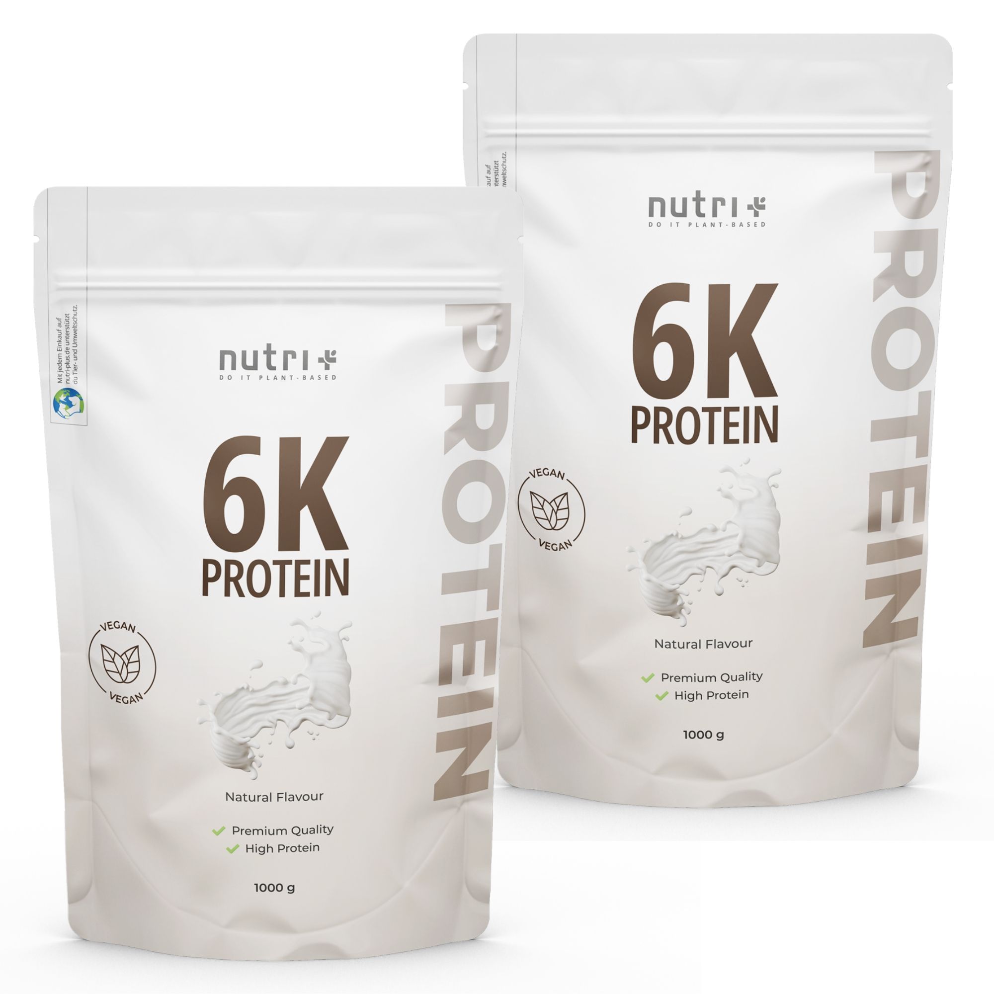nutri+ 6K Protein è una proteina multicomponente di origine vegetale e consiste in oltre l'80% di proteine (proteine isolate della soia, proteine isolate del pisello, proteine del riso, proteine del girasole, proteine delle mandorle e proteine del grano).