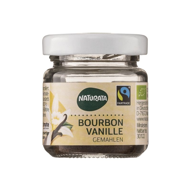 fiori della vaniglia, di colore verde-giallastro, si aprono solo per poche ore al mattino tra novembre e gennaio e vengono impollinati a mano. Se non vengono impollinati in così poco tempo, cadranno lo stesso giorno. Un fiore fecondato si sviluppa in un'ovaia lunga fino a 20 cm in circa quattro settimane. Anche i baccelli di vaniglia maturi, ancora insapore, di colore verde-giallastro vengono raccolti a mano e posti immediatamente in un bagno di calore (circa tre minuti a 70 °C) e poi in un bagno di sudore per una giornata per impedirne la maturazione naturale. Successivamente inizia il processo di essiccazione e fermentazione, che dura diversi mesi. Durante la fermentazione i baccelli di vaniglia diventano prima giallastri, poi marrone scuro e infine sviluppano il loro inconfondibile aroma. Durante l'intero processo di produzione dei prodotti Naturata Bourbon alla vaniglia non vengono utilizzati prodotti chimici. La vera vaniglia ha un gusto molto morbido e piacevolmente aromatico. Oltre allo zucchero, ai grassi e ai minerali, il baccello di vaniglia fermentato contiene più di 130 sostanze aromatiche. Il tipico gusto di vaniglia è caratterizzato prevalentemente dalla vanillina. Nella frutta fresca la vanillina è legata alle molecole di zucchero. Solo attraverso la fermentazione questo legame si rompe e l'aroma di vaniglia può svilupparsi. Le sostanze aromatiche, chiamate anche sostanze vegetali secondarie, a volte si trovano solo in tracce nel frutto della vaniglia. Danno forma al gusto complesso della vera vaniglia Bourbon. Contenuto Vaniglia Bourbon, macinata#. # = Contenuto da agricoltura biologica, ## = Contenuto da coltivazione biodinamica Valori nutrizionali e risultati delle analisi basati su 100 g Energia: 1174 kJ / 281 kcal Grassi: 3,3 g - di cui acidi grassi saturi: 0,9 g Carboidrati: 57, 8 g - di cui zucchero: 57,2 g proteine: 4,0 g sale: < 0,1 g