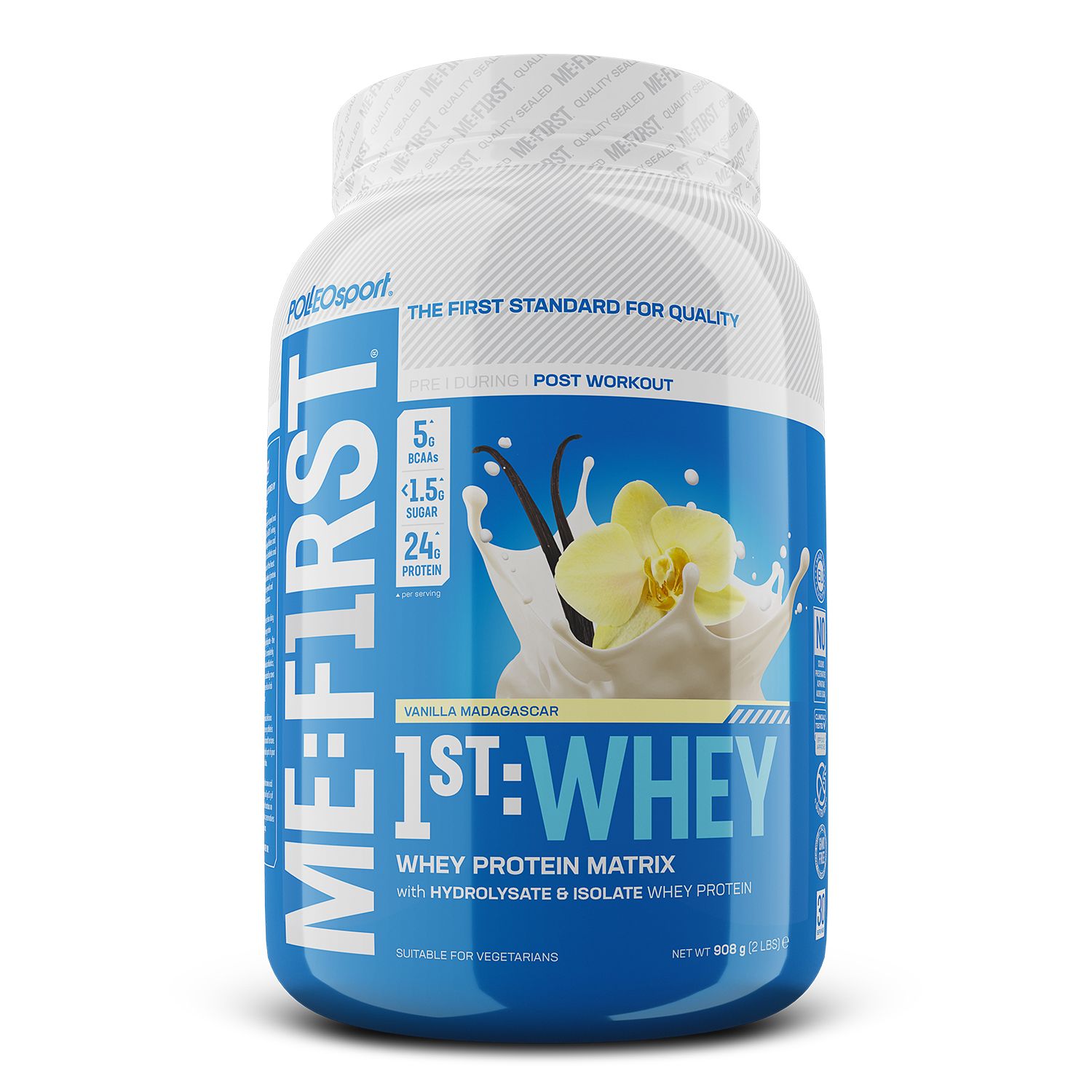 La nuova formula 1st Whey contiene tutti gli aminoacidi essenziali. Con una sola porzione ottieni circa 5g di BCAA e 5g di L-Glutammina. 1st Whey non contiene sostanze dannose, ingredienti OGM, zuccheri aggiunti, glutine o aspartame.