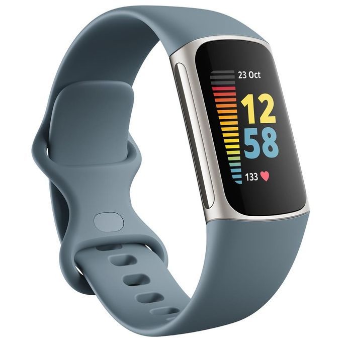 HomeFitbit Charge 5 AMOLED Braccialetto per rilevamento di attività Blu, Acciaio inox