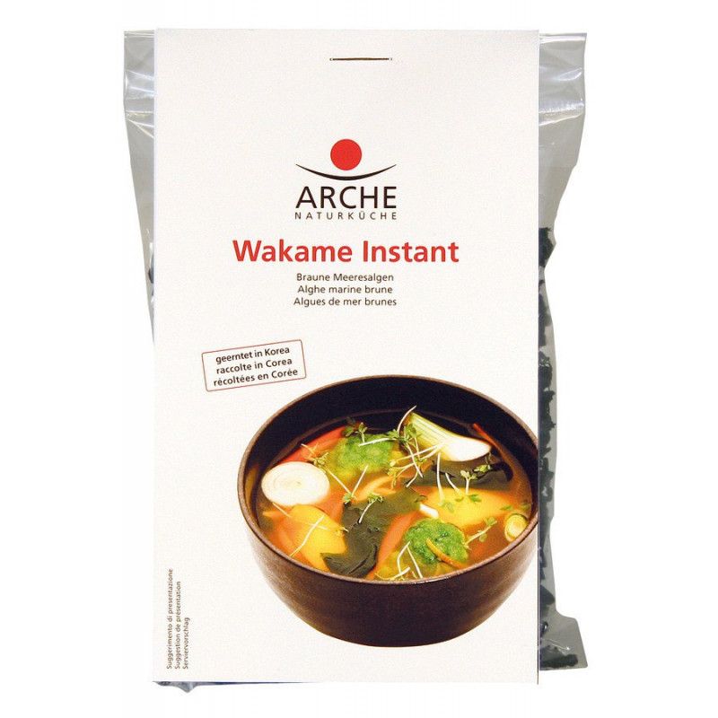 Wakame Instant vengono tritati finemente e possono essere aggiunti a zuppe o piatti di verdure senza ammollo, rendendoli ideali per cotture veloci in movimento. Dopo 1 o 2 minuti le alghe marine marroni sviluppano la loro nota speziata e aromatica. Per preparare la wakame istantanea, sciacquatela in un colino e aggiungetela semplicemente al liquido caldo. Lasciare in infusione per 1-2 minuti. Contenuto wakame essiccato (undaria pinnatifida). Naturalmente ricco di iodio. Un’assunzione eccessiva di iodio può portare a disfunzioni tiroidee. La Società Tedesca di Nutrizione raccomanda quindi un'assunzione media giornaliera non superiore a 0,2 mg di iodio. Il consumo massimo giornaliero è quindi di ca. 1 g = 1 cucchiaino di alghe essiccate. Assicurati di preparare il prodotto secondo le istruzioni di preparazione. Valori nutrizionali e risultati delle analisi basati su 100 g Energia: 577 kJ / 138 kcal Grassi: 4 g - di cui acidi grassi saturi: 0,3 g Carboidrati: 42 g - di cui zucchero: 6,2 g Proteine: 18 g Sale: 24,1 g Vitamine e minerali sulla base di 100 g di iodio: 19000 µg
