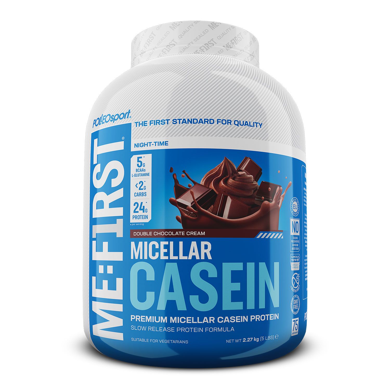 Me: First Micellar Casein è una proteina del latte a digestione lenta, ottenuta dal latte di mucche pascolanti in Irlanda. È ricca di aminoacidi, in particolare di BCAA naturali. Me: First Micellar Casein ha una formula efficace, facilmente digeribile e quindi con un'azione anti-catabolica.