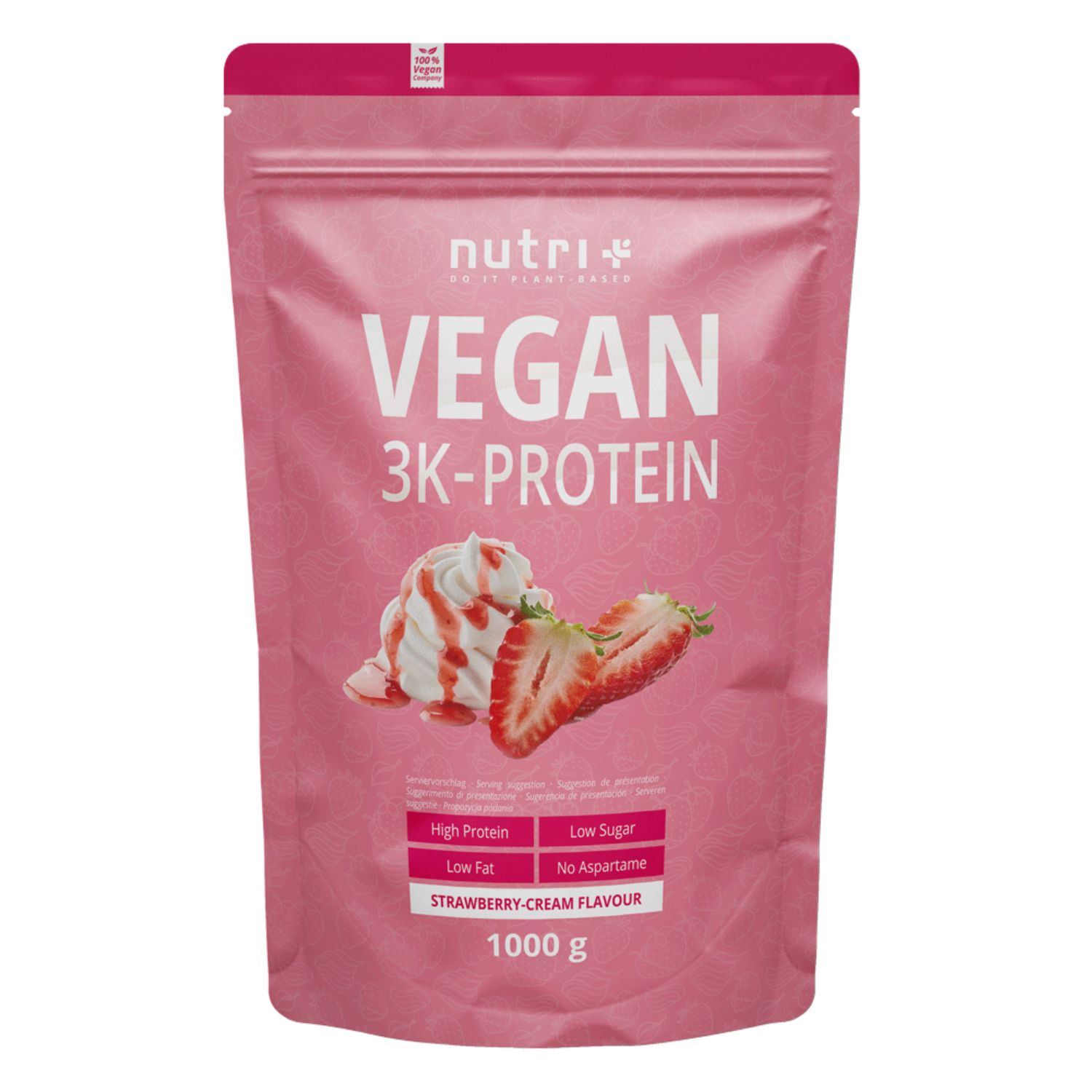 Nutri-Plus Shape & Shake Vegan è una proteina multicomponente a base vegetale e consiste - a seconda del gusto - in oltre l'80% di proteine (isolato proteico di soia senza OGM, isolato proteico di pisello e proteine del grano).