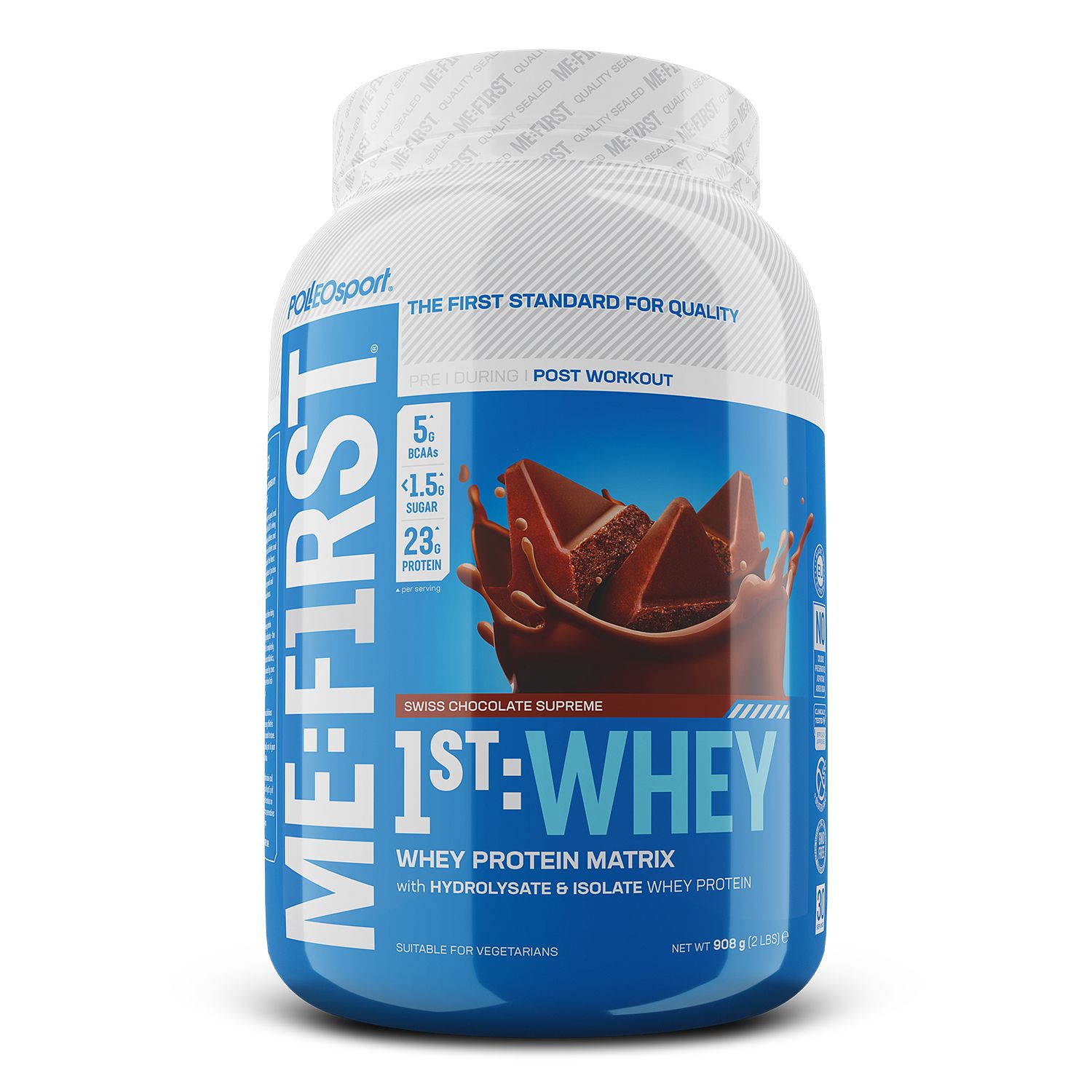1st Whey Protein, dalla linea di prodotti Me:First, è uno dei prodotti più avanzati nel campo della nutrizione sportiva, disponibile presso Polleo Sport, grazie alla sua nuova formula proteica. Per un perfetto mix, la formula proteica è arricchita con aminoacidi essenziali, BCAA e L-Glutammina. Questa formula proteica è stata sviluppata e raccomandata da nutrizionisti per tutte le persone attive nel campo dello sport che cercano il miglior prodotto per la costruzione efficace dei muscoli.