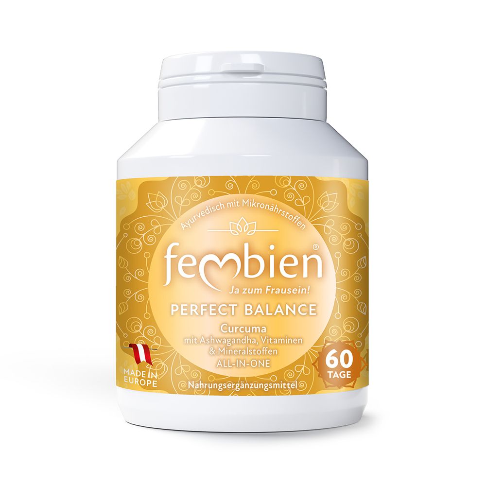 Le donne sono spesso esposte allo stress a causa delle influenze or- monali e dei molteplici oneri. La vita quotidiana presenta sempre nuo- ve sfide al lavoro, a casa e nell‘istruzione. „Perfect Balance“ è il vostro aiutante segreto e compagno fedele, che vi sostiene in ogni situazione e vi dà forza in tutte le fasi della vita. „Perfect Balance“ concentra tutte le sue energie sul benes- sere delle donne. Questo „prodotto di benessere a tutto tondo“ com- bina le conoscenze millenarie dell‘Ayurveda con le preziose sostanze vegetali della natura. Il pieno potere vitaminico e minerale, unito al potere vegetale ayurvedico dell‘ashwagandha e della curcumina „d‘o- ro“, ha un effetto rinforzante ed equilibrante e sostiene le donne in una vita quotidiana impegnativa e stressante.
