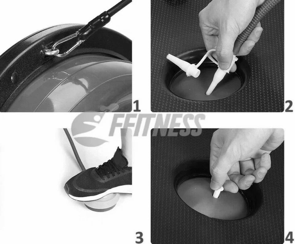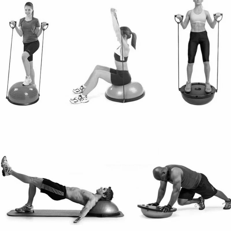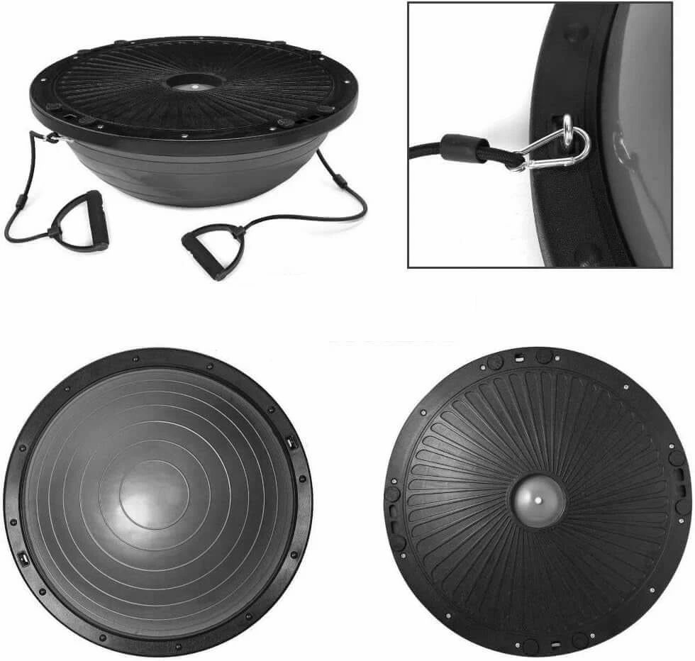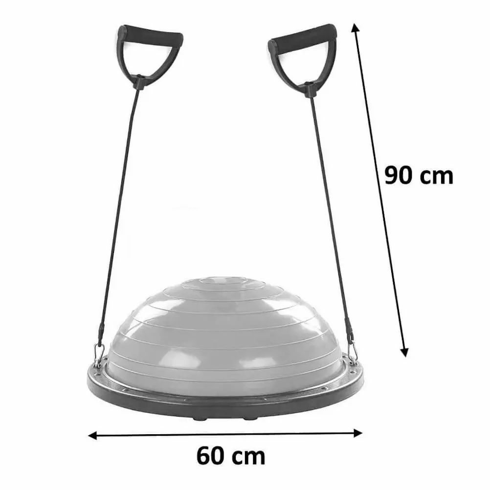 Palla bosu con elastici per svolgere infinite combinazioni di esercizi, da utilizzare dalla parte piatta e e sferica, potrai aumentare coordinazione, equilibrio e coinvolgere tutto il tuo corpo fino alla muscolatura profonda.