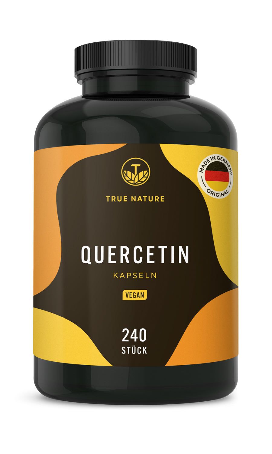 La quercetina (dal latino "Quercus" - quercia) si riferisce a un pigmento naturale giallo del gruppo dei flavonoidi (sostanze vegetali secondarie, che a loro volta formano un sottogruppo di polifenoli). La quercetina si trova naturalmente in molte specie di piante. Particolarmente ricchi di quercetina sono i fiori e i boccioli della sofora giapponese (Sophora japonica L., anche albero della pagoda giapponese), che è un membro della famiglia delle Fabacee. Per le nostre capsule di quercetina, usiamo l'estratto di fiore di sofora con un rapporto di estratto di 12:1. L'estratto delicatamente ottenuto viene essiccato e granulato, e raggiunge così le tue capsule di quercetina True Nature pure e senza additivi.