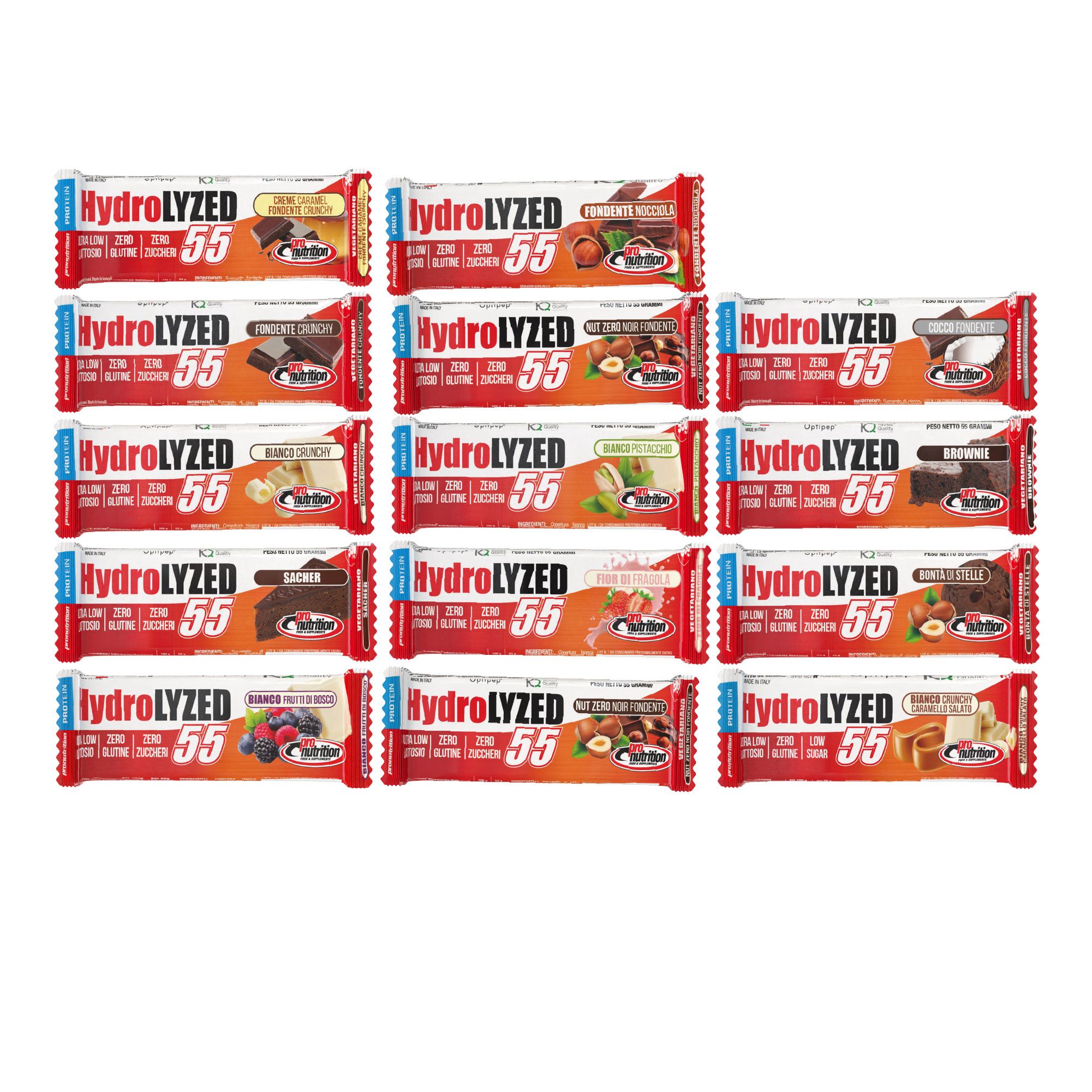 Barretta proteica Hydrolized senza zuccheri (14 x 55 gr, Gusti misti)