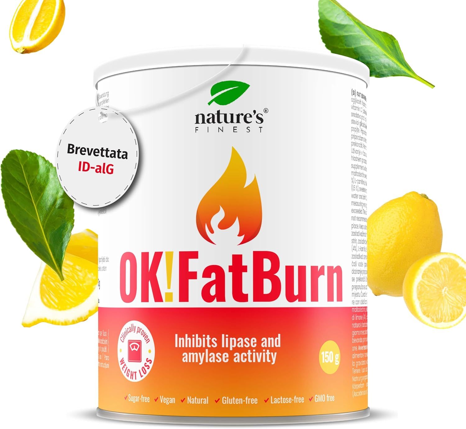 OK! FatBurn con tripla azione favorisce la perdita di peso e grasso corporeo. ID-alG™ è una formula brevettata a base di estratto di alghe brune che inibisce l'attività di due enzimi digestivi principali: lipasi e amilasi.