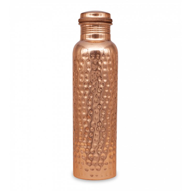 La borraccia in rame è il compagno perfetto per i viaggi. Realizzato in rame martellato con una capacità di 900 ml.