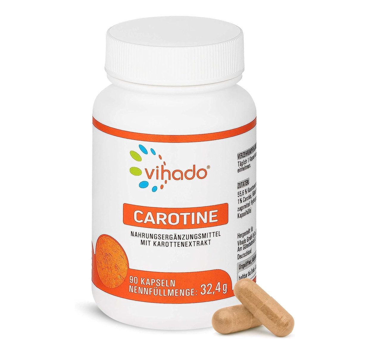 Fornitura e dettagli: 1x Vihado Beta Carotene ad alto dosaggio, capsule con estratto naturale di carota come integratore alimentare, 90 capsule (32,4 g)