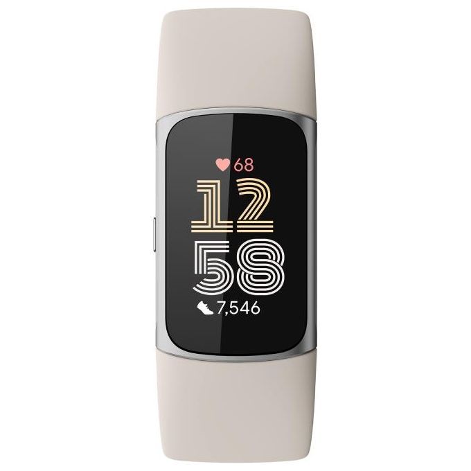 Fitbit Charge 6. Tipo di display: AMOLED. Tipo di dispositivo: Braccialetto per rilevamento di attività, Fattore di forma: Rettangolo, Colore del prodotto: Beige, Argento. Tipo di sensore di frequenza cardiaca: Ottico, Capacità di memoria: 7 giorno(i), Capacità di memoria dei totali giornalieri: 30 giorno(i). Durata della batteria: 7 giorno(i), Tecnologia batteria: Polimeri di litio (LiPo), Tempo di ricarica: 2 h. Larghezza: 18,5 mm, Profondità: 38,6 mm, Spessore: 1,17 cm