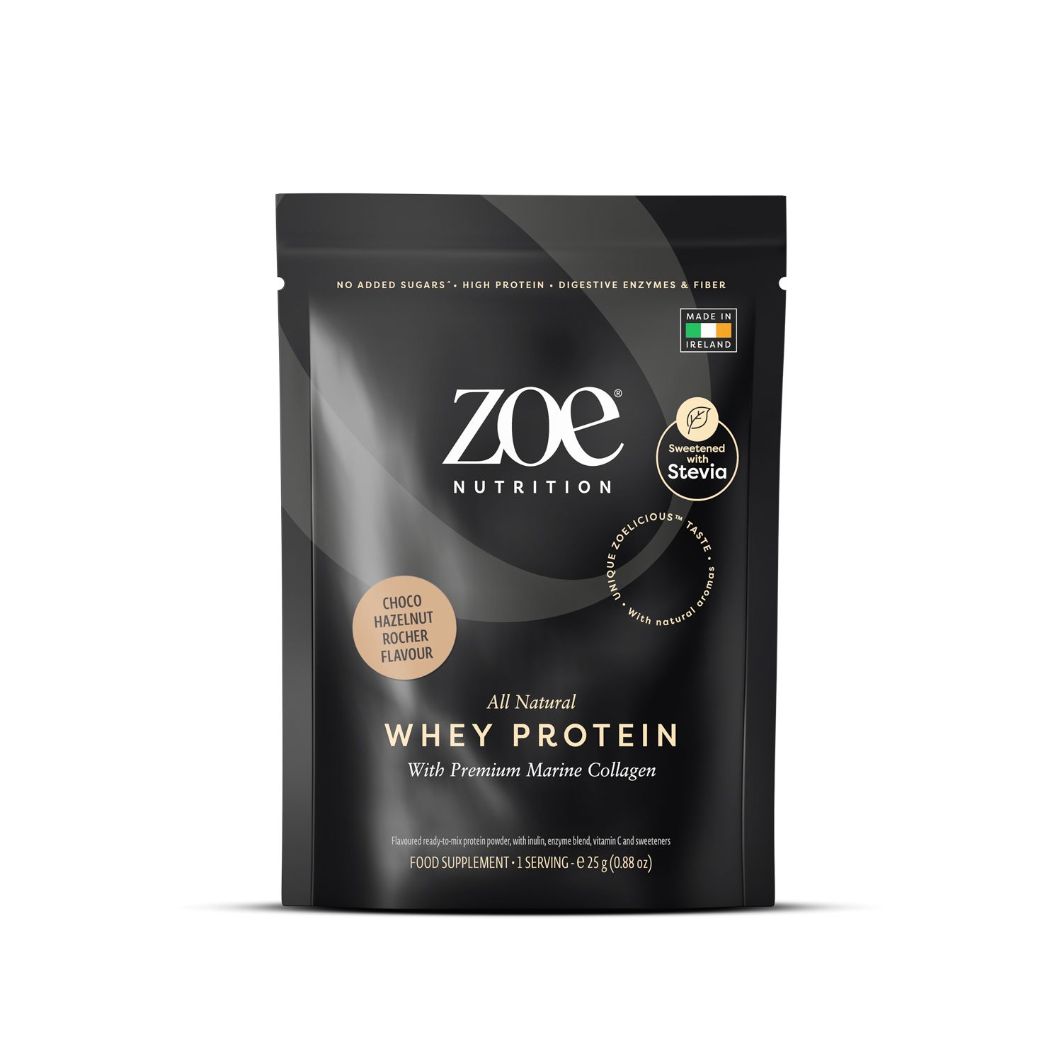 Ti presentiamo lo zoe Whey Collagen, il massimo della nutrizione premium. Prodotto con cura in Irlanda, la nostra miscela innovativa combina concentrato e isolato di whey idrolizzato con collagene marino di alta qualità e vitamina C, per creare una formula potente che mira a migliorare la tua routine di salute e benessere.