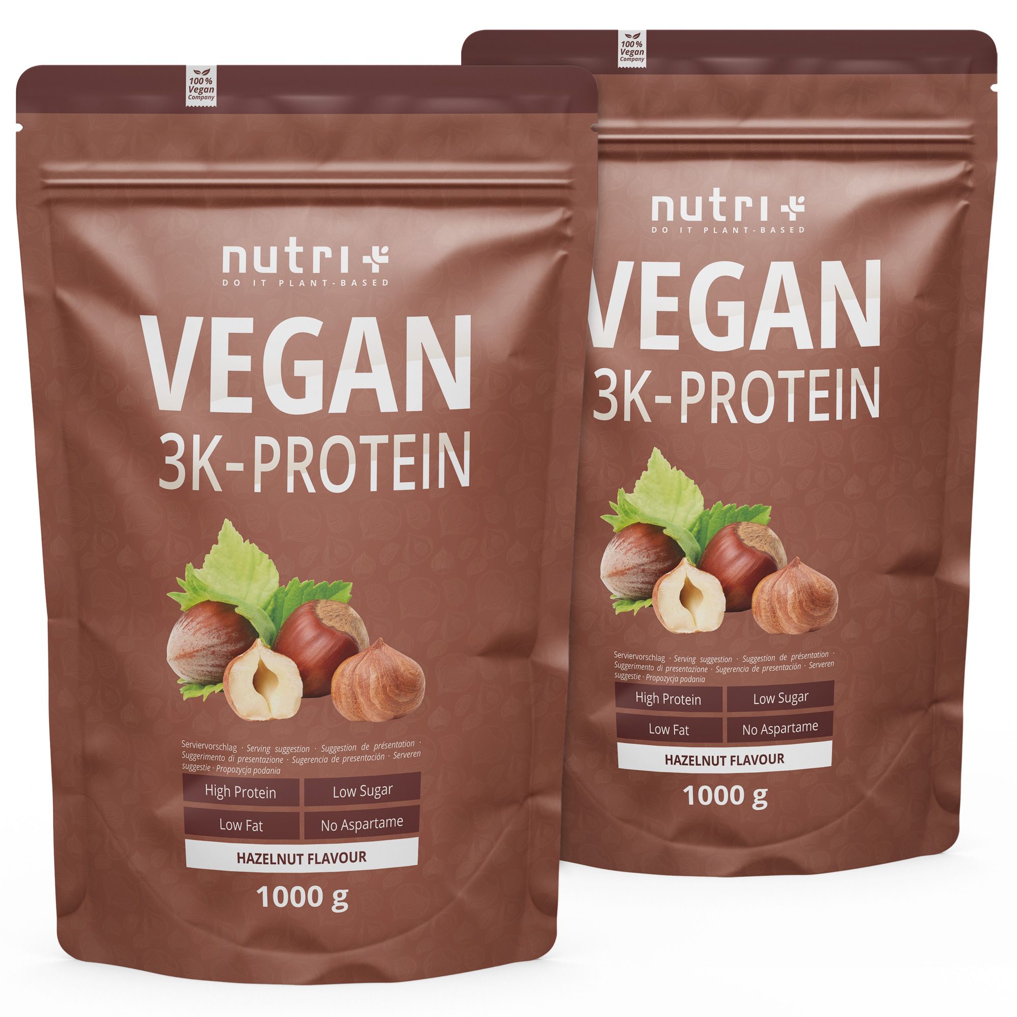 nutri+Vegan 3K Protein è una proteina multicomponente a base vegetale e consiste in oltre l'80% di proteine (proteine isolate della soia, proteine isolate del pisello e proteine del girasole).