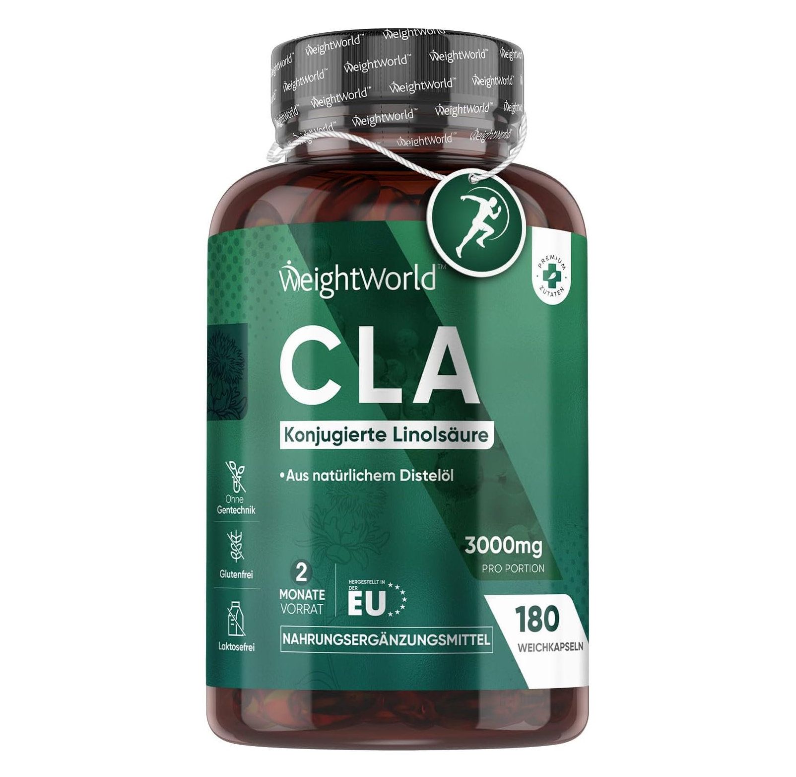 Facili da deglutire: secondo l’EFSA, l’acido linoleico contribuisce al mantenimento di livelli normali di colesterolo nel sangue; il CLA è un acido grasso insaturo essenziale; i softgel vegani WeightWorld sono facili da assumere