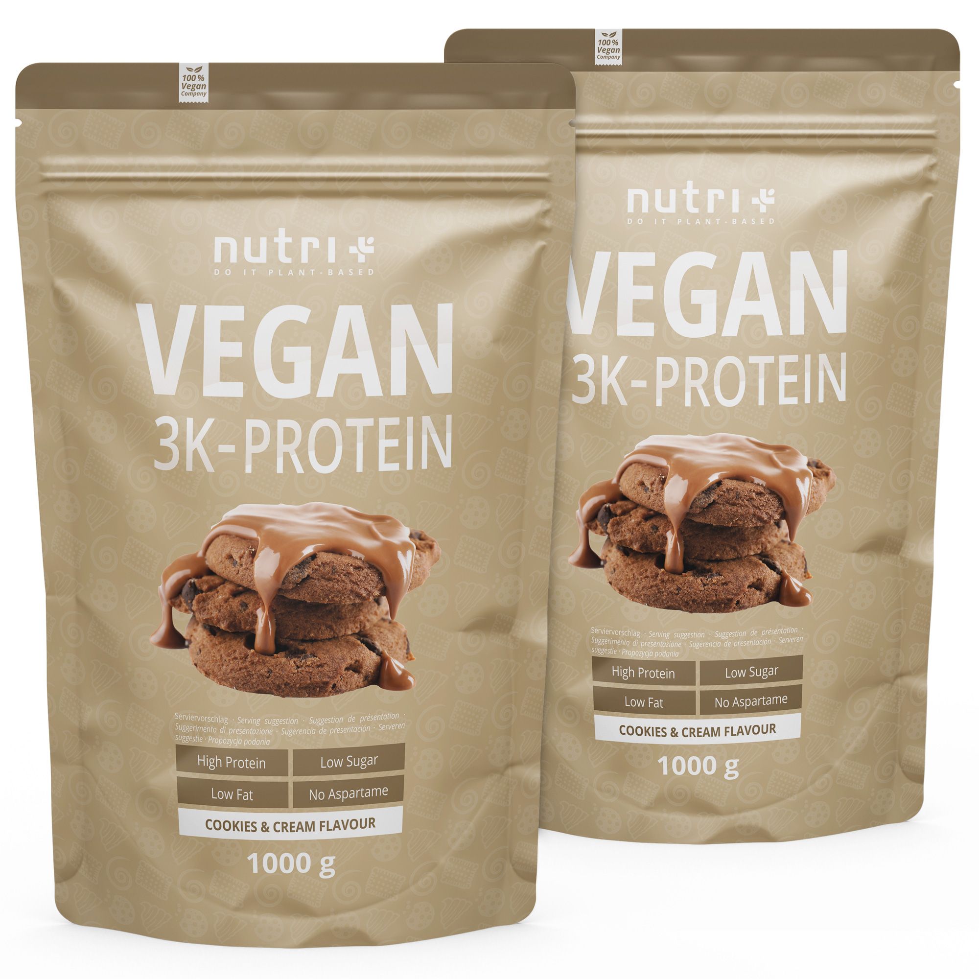 Nutri-Plus Shape & Shake Vegan è una proteina multicomponente a base vegetale e consiste in oltre l'80% di proteine (isolato proteico di soia senza OGM, isolato proteico di pisello e proteine del grano).