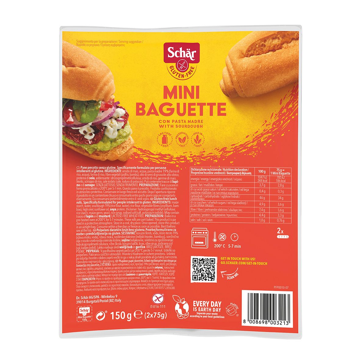 Una petite baguette senza glutine per sentirti subito in Francia. Pochi minuti di forno sprigioneranno tutto l'aroma di questo piccola baguette senza glutine che unisce al piacere del sapore una maggior praticità d'uso rispetto alla tradizionale baguette francese. Ogni confezione contiene due fragranti panini che potrai gustare come veloce pausa pranzo oppure per una croccante "scarpetta" per accompagnare sughi ed intingoli Senza glutine, senza frumento, senza lattosio: la baguette Schär accontenta celiaci e vegani!