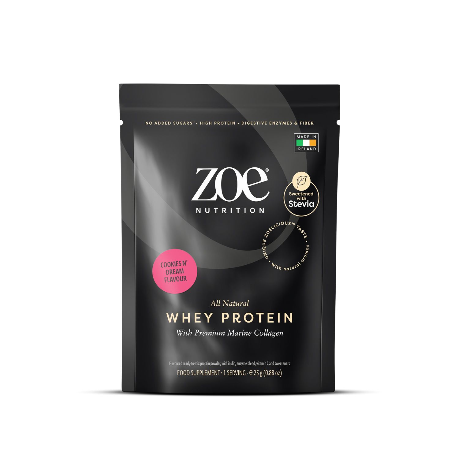 Ti presentiamo lo zoe Whey Collagen, il massimo della nutrizione premium. Prodotto con cura in Irlanda, la nostra miscela innovativa combina concentrato e isolato di whey idrolizzato con collagene marino di alta qualità e vitamina C, per creare una formula potente che mira a migliorare la tua routine di salute e benessere.