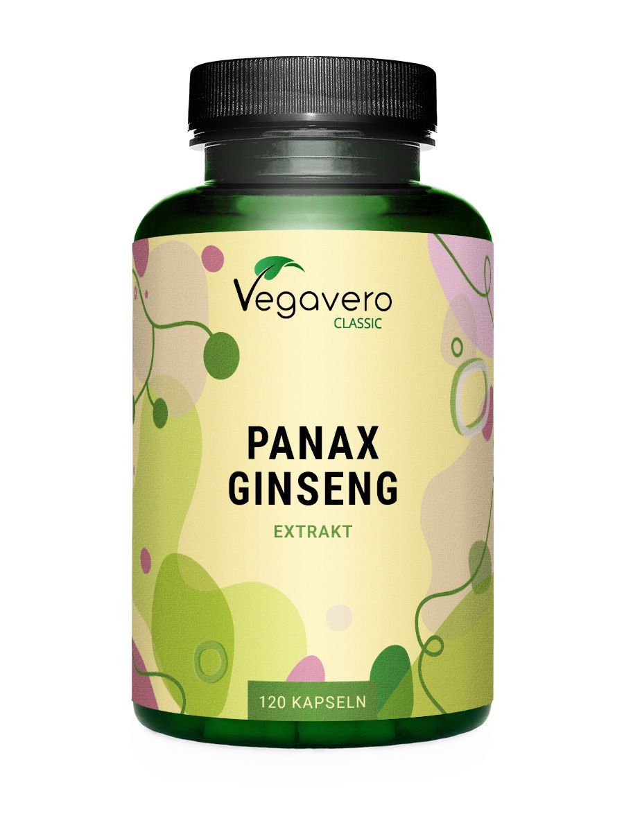 Integratore vegano a base di Ginseng Rosso e di foglie di Ginseng coreano (Panax ginseng) con il 20% di ginsenosidi.