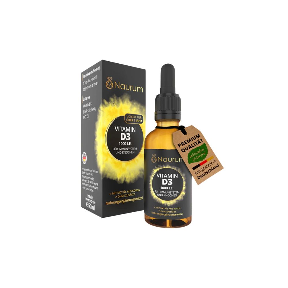 Naurum Vitamina D3 Gocce – 1000 UI per goccia, oltre 1 anno di fornitura. Per difese forti, ossa sane e muscoli attivi – ad alto dosaggio, neutro nel gusto e puro.