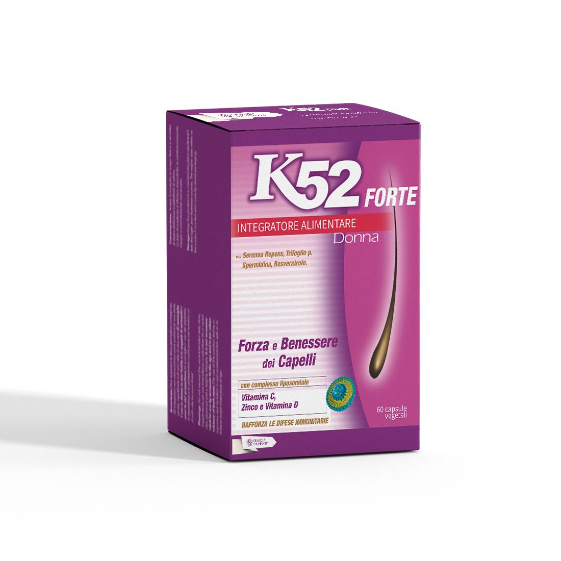 vegetale (Idrossipropilmetilcellulosa); Vitamina C liposomiale (Acido L-Ascorbico, Emulsionante Lecitina); L-Taurina; Lievito al selenio; Trifoglio rosso (Trifolium pratense L) Flos e.s. tit. 8%; vitamina B1 (Tiamina mononitrato); vitamina B2 (Riboflavina); L- Cistina; Miglio (Panicum Miliaceum L.) frutto e.s; keratina idrolizzata; Paba (Acido paraminobenzoico); Agente di carica: Cellulosa microcristallina; Vitamina B3 (Niacina); Calcio pantotenato; Resveratrolo (Polygonum cuspidatum) radice e.s tit. 98%; Zenzero (Zingiber officinale Rosc) rizoma e.s.; L- metionina; Vitamina B6 (Piridossina cloridrato); Spermidina 3Hcl (N-3- Aminopropil-Tetrametilendiammina tricloridrato); SOD (Superossido dismutasi); Rame gluconato; Vitamina B12 (Cianocobalamina);Acido folico (Vitamina B9); D-Biotina (Vitamina B8); Antiagglomeranti: Sali di magnesio degli acidi grassi, Biossido di silicio.