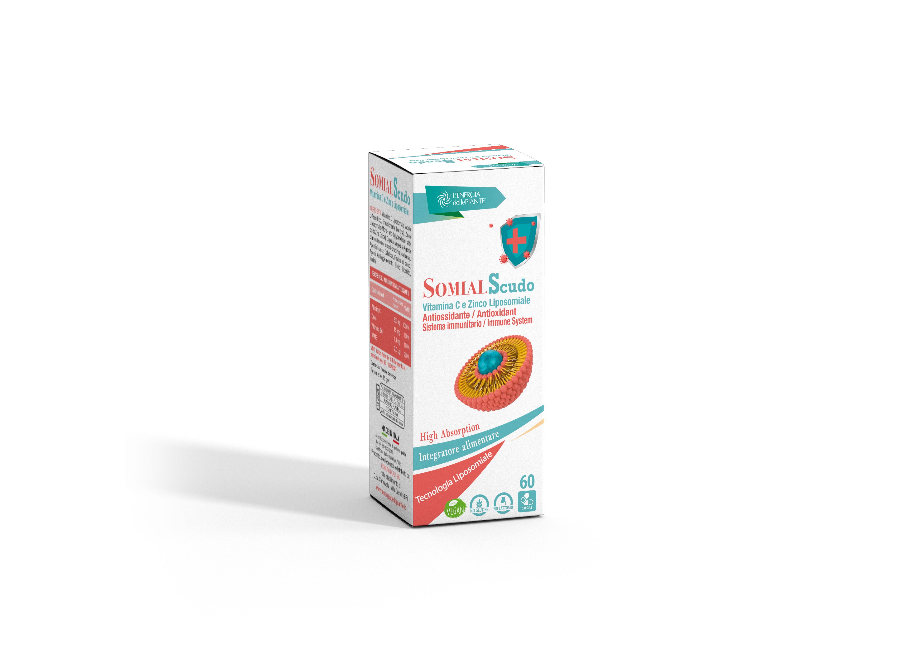 Vitamina C Liposomiale (Acido L-Ascorbico, Emulsionante Lecitina), Zinco Liposomiale (Mono- and diglycerides of fatty acids Zinc Oxide). Capsula Vegetale (Agente di rivestimento: idrossi-propilmetilcellulosa). Agenti di carica: Cellulosa, Fosfato di calcio. Agenti Antiagglomeranti: Silicio Biossido, Inulina.