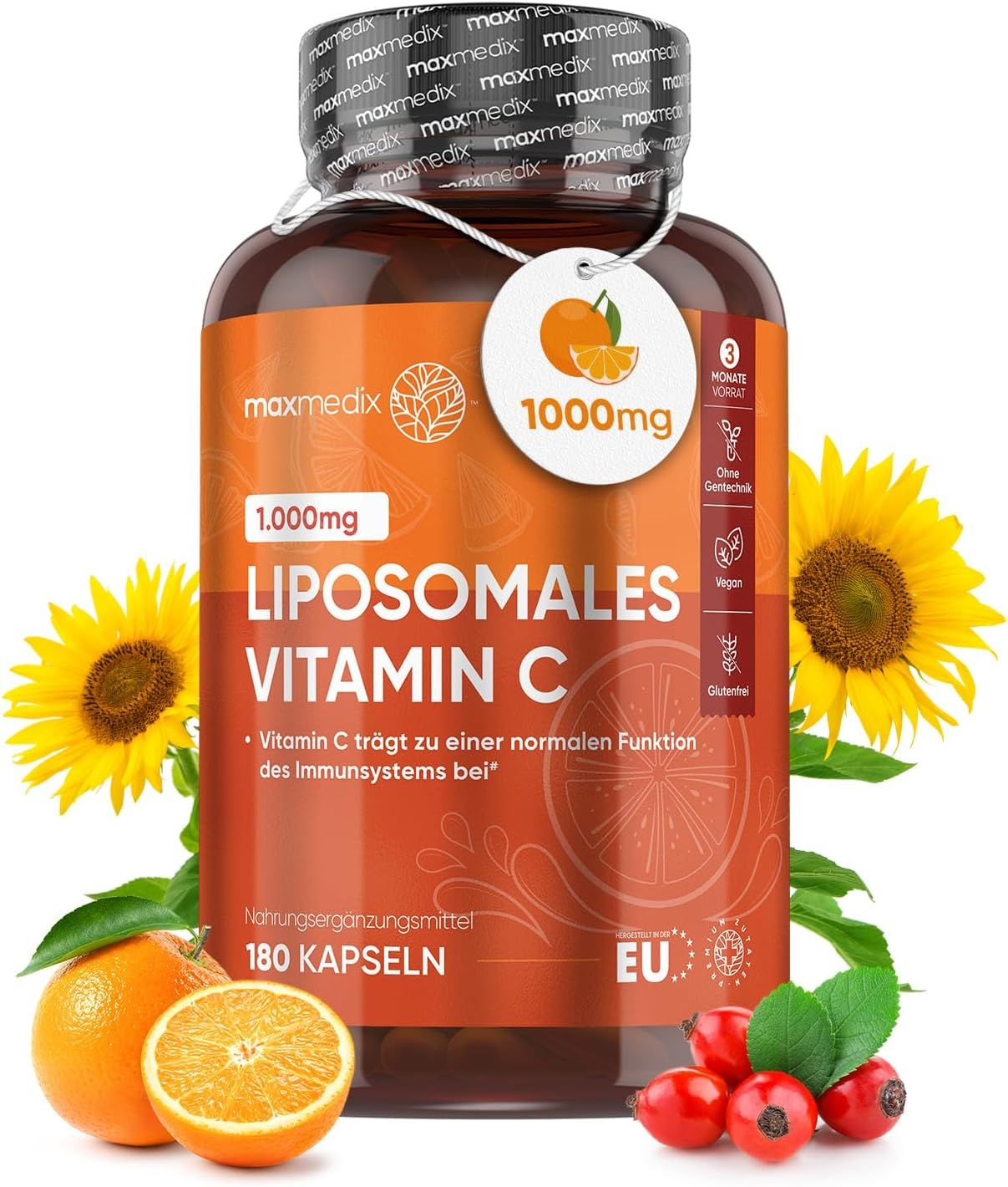 Vitamina C liposomiale - Le nostre capsule di vitamina C liposomiale contengono 1000 mg di acido ascorbico e, in aggiunta, fosfolipidi di rosa canina e girasole come formula ottimale. I liposomi sono una sorta di guscio per la vitamina C, che la protegge dagli acidi e dagli enzimi presenti nello stomaco e nell'intestino. Ciò consente di assorbire una quantità maggiore di vitamina C dalle cellule. Si ricevono 180 capsule per confezione e 3 mesi di fornitura.