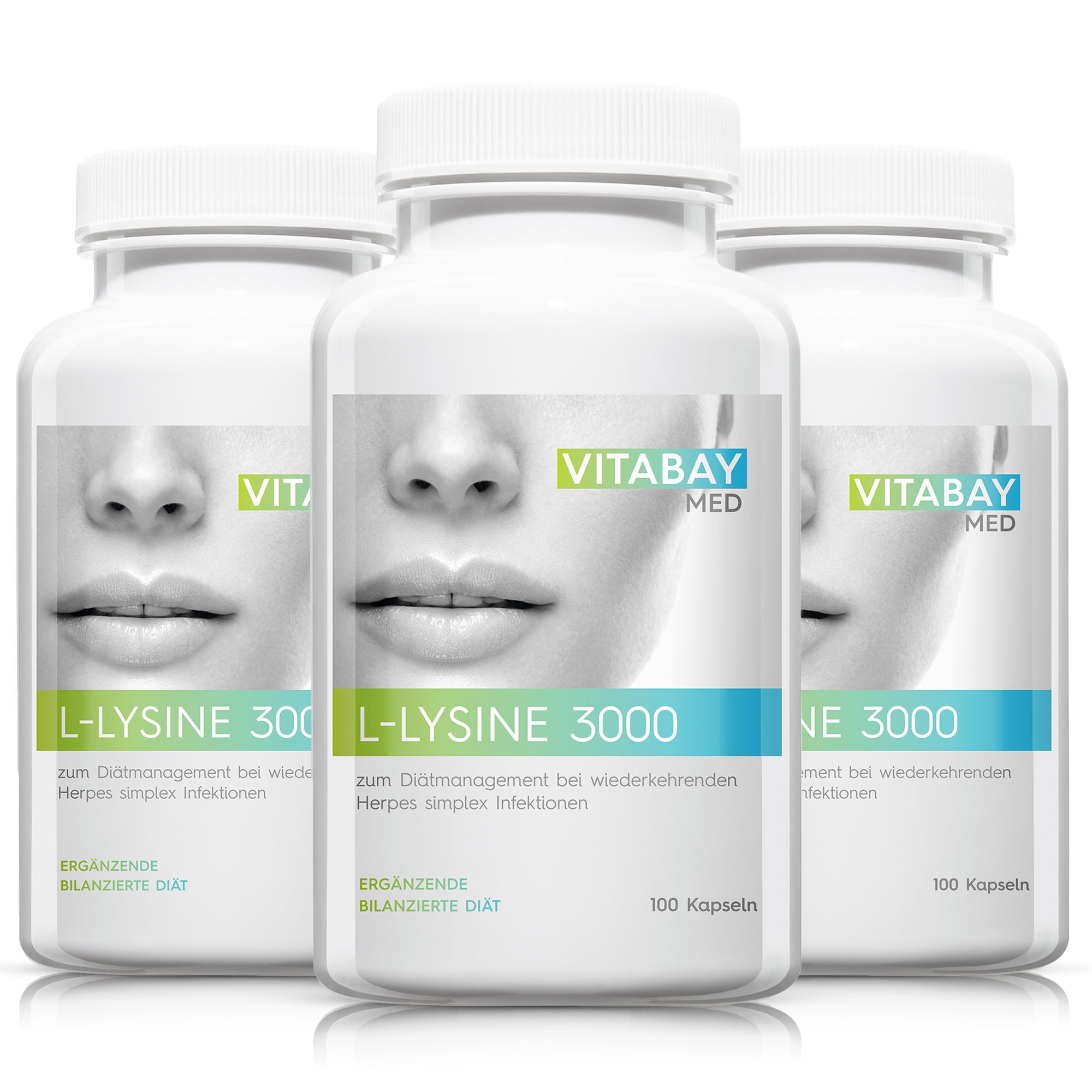 Assumere 3 capsule al giorno con abbondante liquido. 3 capsule forniscono 2250 mg di L-lisina.