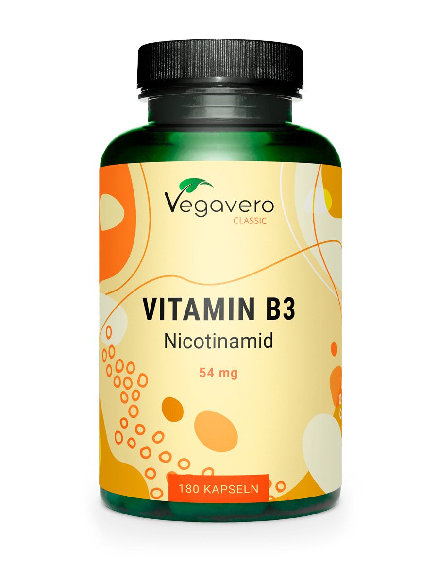 La nicotinammide è una forma di vitamina B3. Essa favorisce il benessere generale in quanto influenza il nostro metabolismo energetico, la struttura dei tessuti e il nostro sistema immunitario. Ha anche proprietà antiossidanti. Essendo idrosolubile il corpo non è in grado di immagazzinarla a lungo termine ed è quindi necessario assumerla attraverso il cibo. La vitamina B3 si trova soprattutto nei prodotti animali come uova, pollame, pesce e cereali integrali. Per questo motivo può essere particolarmente utile integrarla per i vegani, i vegetariani o le persone intolleranti al glutine. I sintomi di una carenza di vitamina B3 possono comprendere infiammazione della pelle, vomito, diarrea, mal di testa, stanchezza e persino perdita di memoria.
