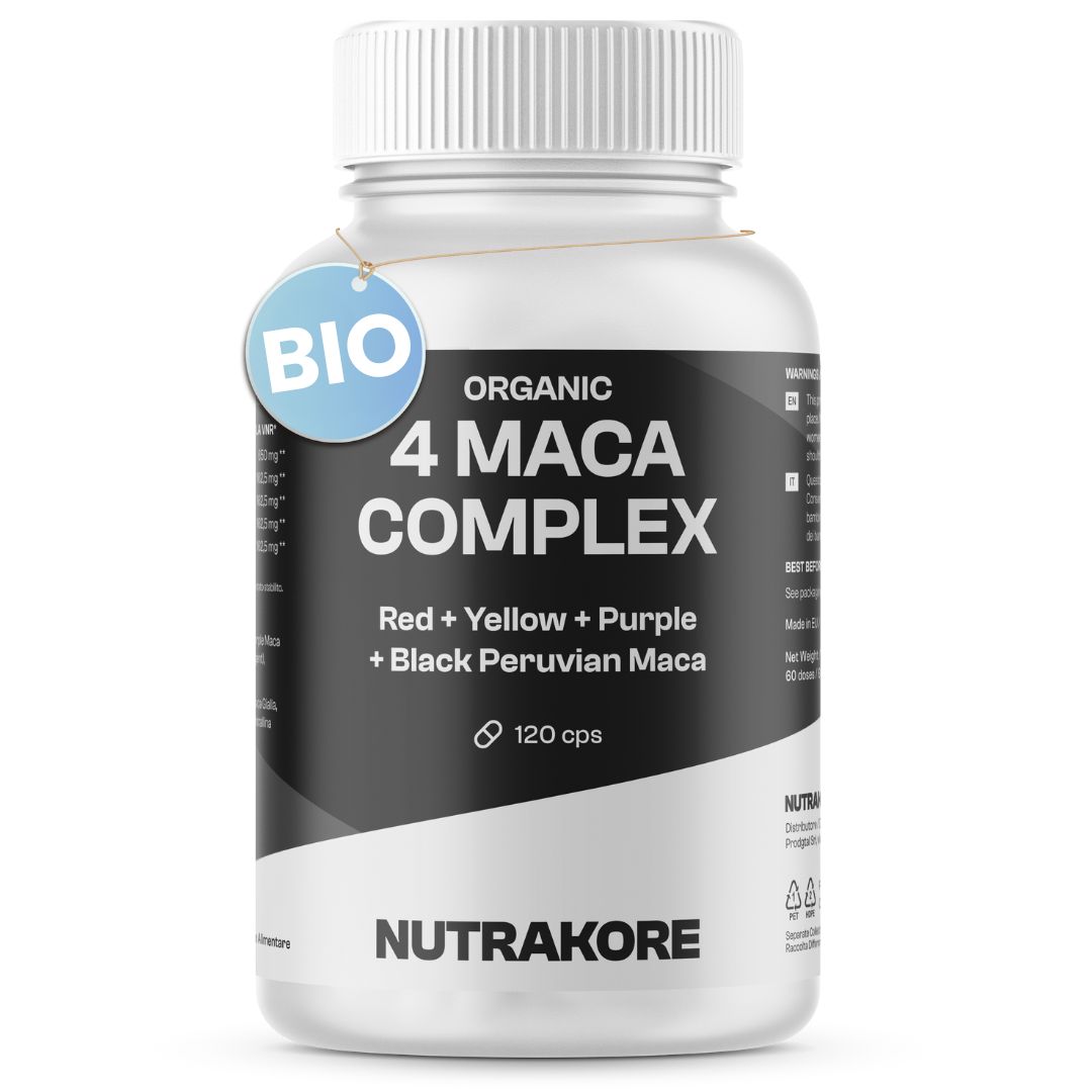 4 MACA COMPLEX - Integratore ad alto dosaggio a base di estratto di radice di Maca Nera Peruviana, radice di Maca Rossa, Maca Gialla e Maca Viola.