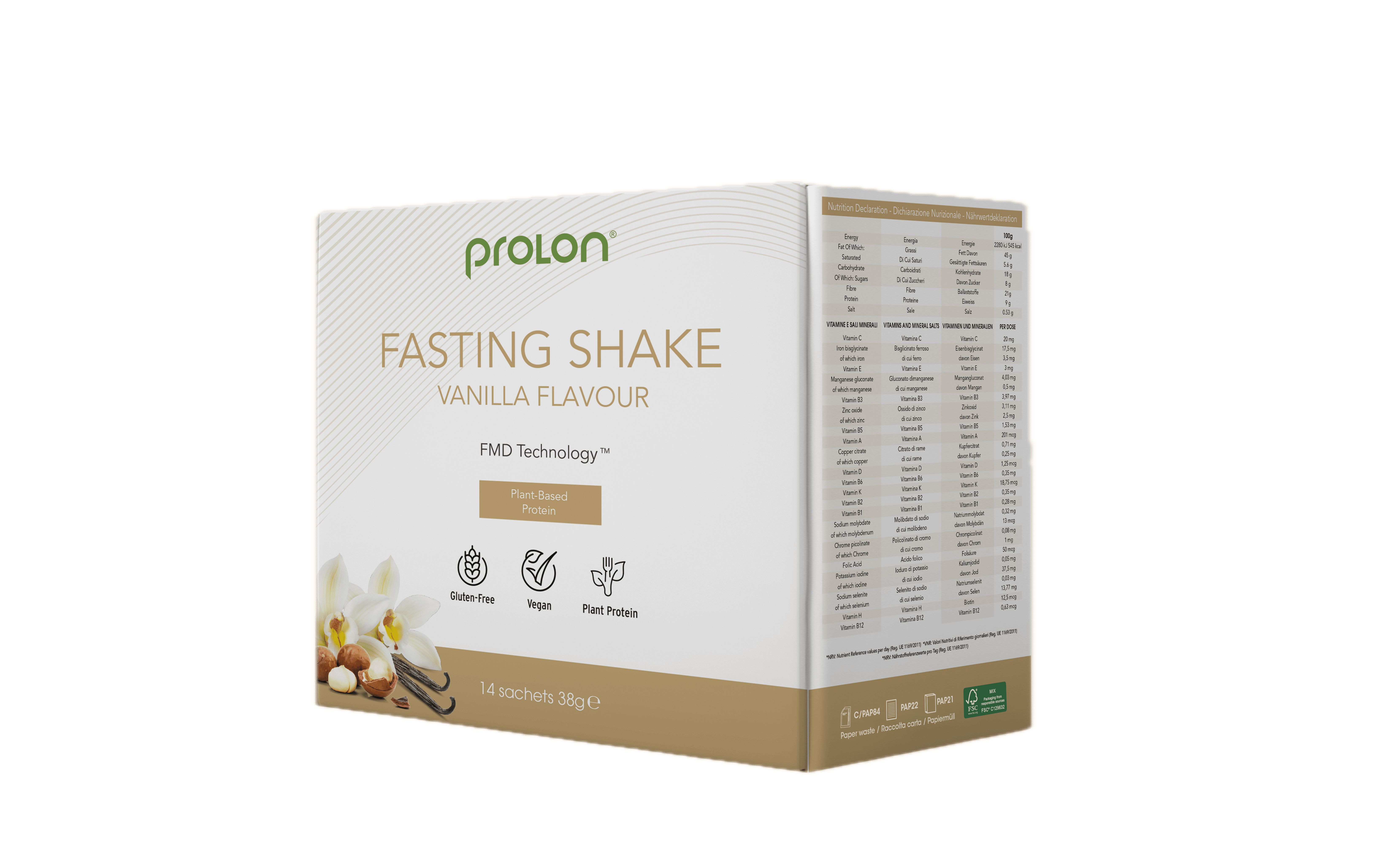 Fasting Shake è stato scientificamente formulato e brevettato da gerontologi ed esperti di longevità presso USC e L-Nutra per essere efficace come il digiuno solo acqua nel ridurre i livelli di glucosio e aumentare i corpi chetonici.