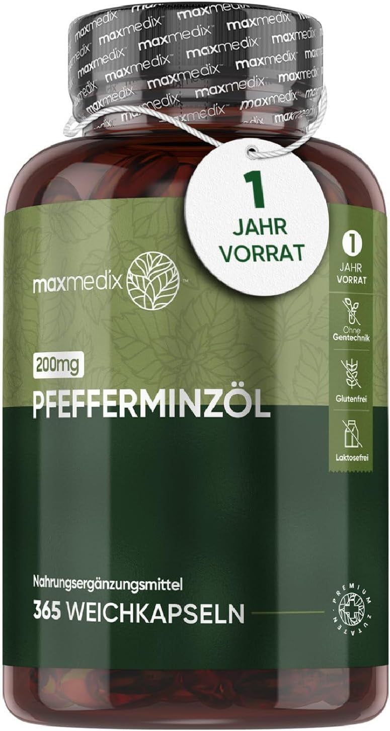 Peppermint Oil Softgel 200mg - Le nostre capsule contengono un estratto di foglie di menta piperita per una scorta di 1 anno. Essenziale