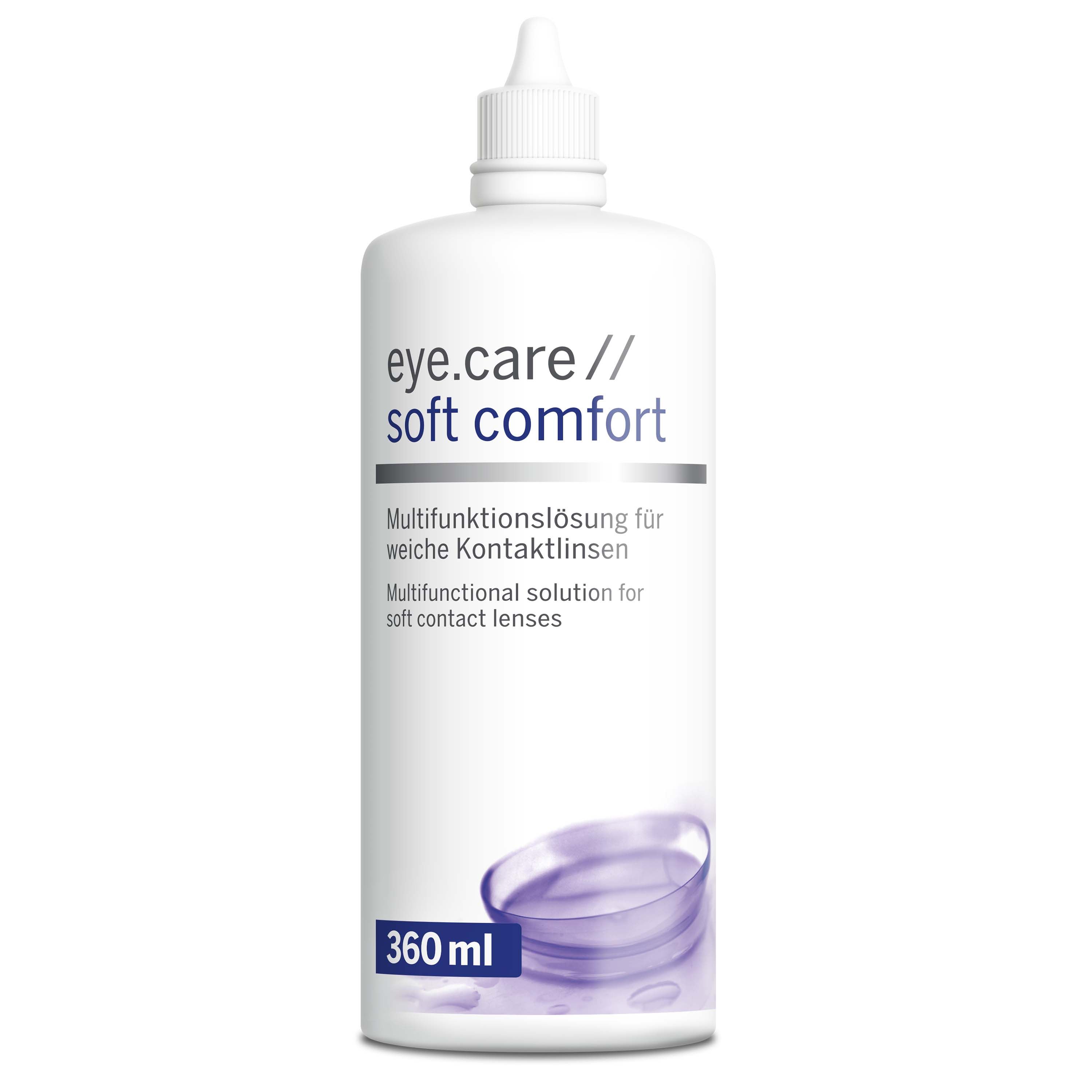 Con la eye.care soft comfort solution, tutte le lenti a contatto morbide possono essere pulite, risciacquate, disinfettate, conservate e umidificate. È una soluzione tampone isotonica per la cura quotidiana, con una pulizia eccellente grazie alla rimozione integrata delle proteine. Grazie alla bassa percentuale di poliesanidi, la eye.care soft comfort solution è particolarmente adatta agli occhi sensibili.