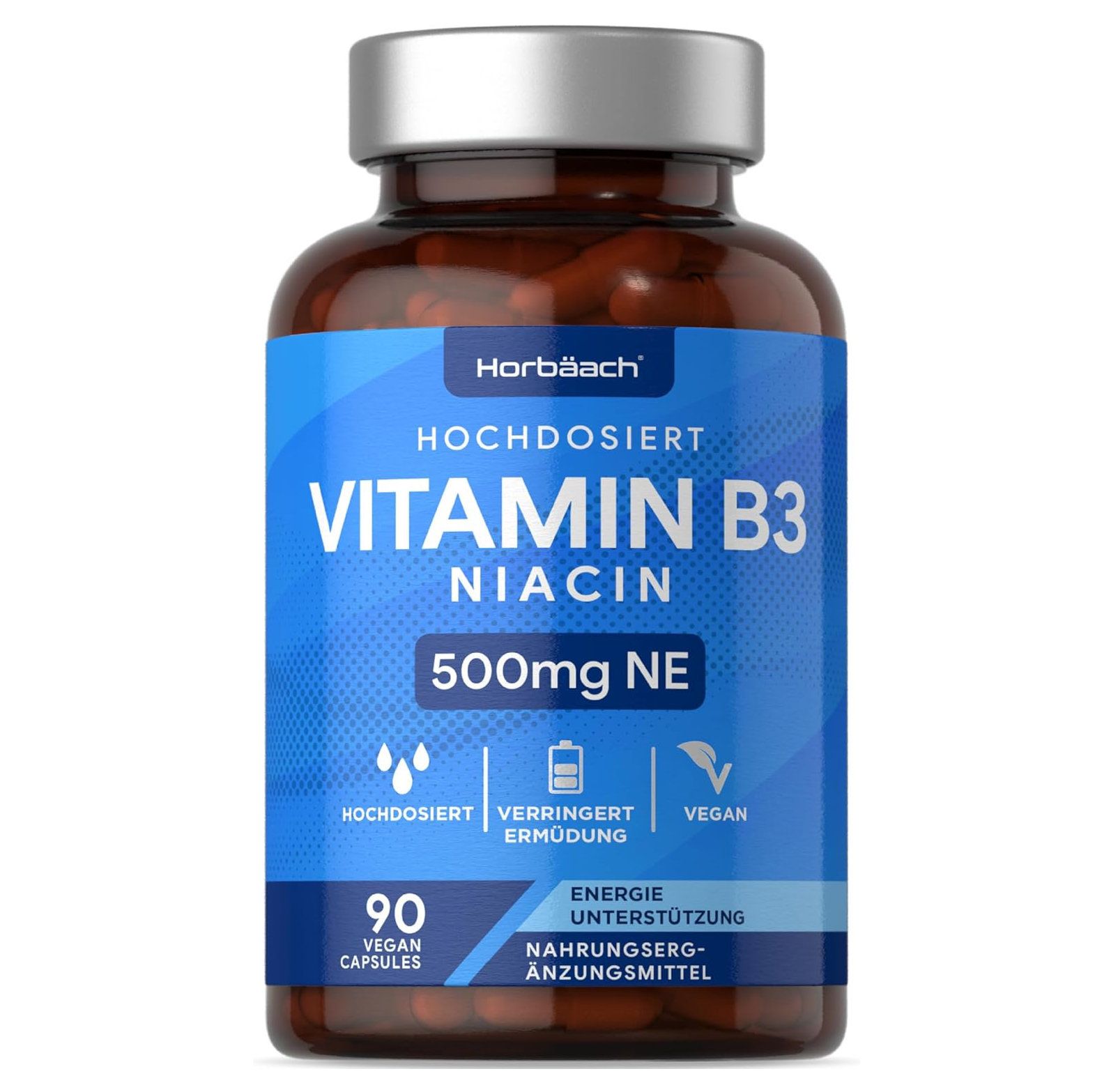 Perché scegliere la vitamina B3 Horbaach?: ogni capsula vegana contiene 500 mg di nicotinamide