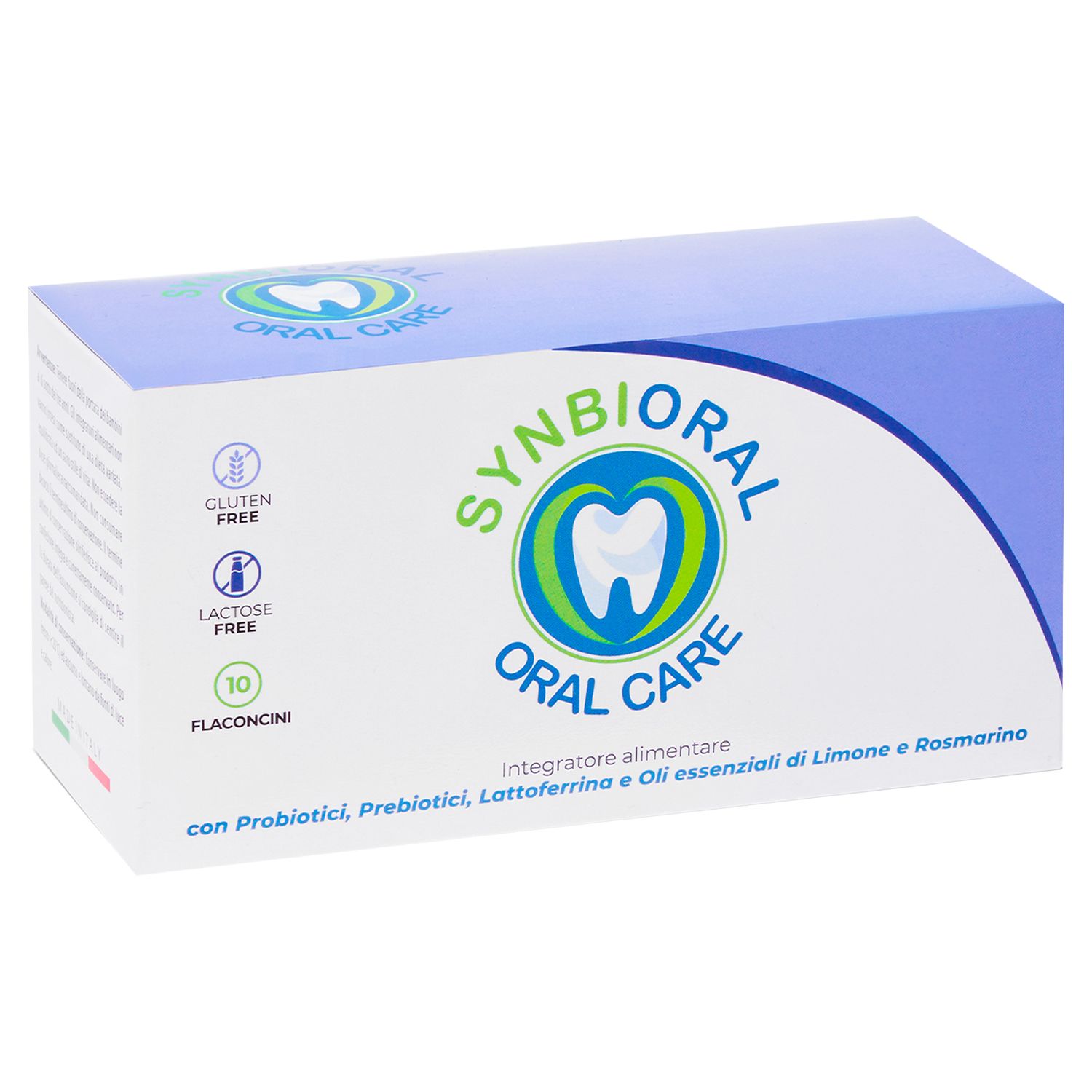 Synbioral è un integratore alimentare in flaconcini monodose, concepito per il benessere del cavo orale e il microbiota intestinale. La sua formulazione unica associa L. salivarius SGL 03, lattoferrina, fibre prebiotiche GOS e oli essenziali di limone e rosmarino.