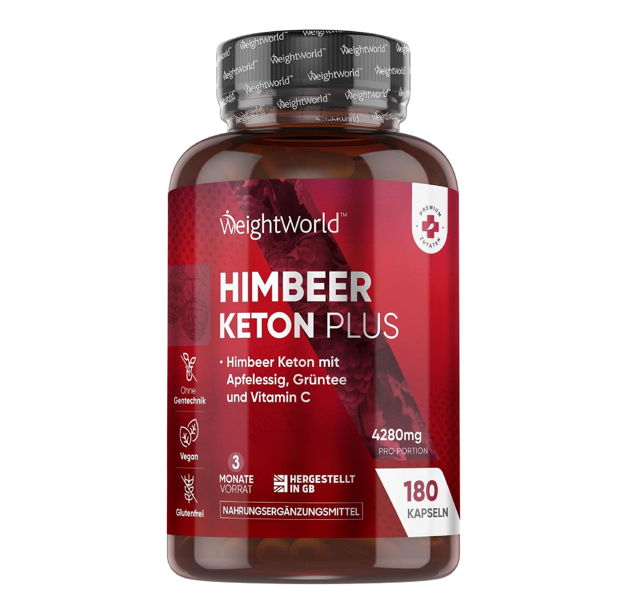 Con vitamina C, aceto di mele, polvere di acai, pectina di mela, tè verde – chetoni di lampone con superfood