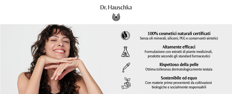 Pioniere della cosmesi naturale certificata dal 1967, Dr. Hauschka nasce in Germania e formula prodotti per viso, corpo, capelli e make-up con ingredienti biologici e biodinamici. Grazie al potere curativo delle piante officinali, sostiene il naturale equilibrio della pelle con skincare efficaci, sostenibili e prive di siliconi, oli minerali e conservanti sintetici.