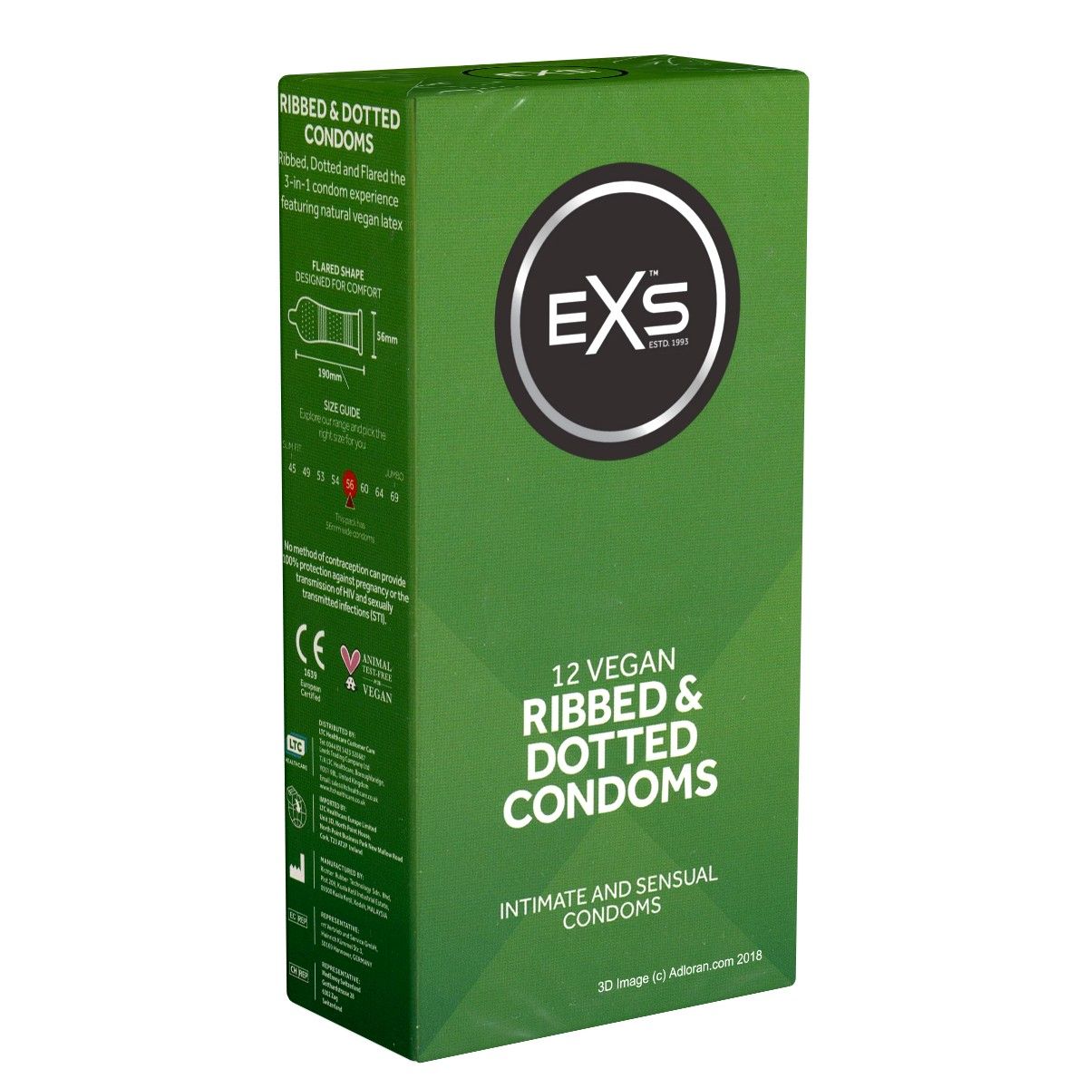 La confezione da 12 preservativi EXS «Ribbed & Dotted» offre profilattici con nervature e puntini che regalano una sensazione particolarmente stimolante per entrambi i partner. Questi preservativi sono realizzati in lattice di gomma naturale trasparente, sono vegani e inumiditi con olio di silicone per garantire un utilizzo confortevole. Con una larghezza nominale di 56 mm e la forma anatomica, si adattano perfettamente e garantiscono una vestibilità sicura. Questi preservativi strutturati sono progettati per promuovere un'esperienza pelle a pelle intensa, garantendo al contempo il massimo comfort e sicurezza.