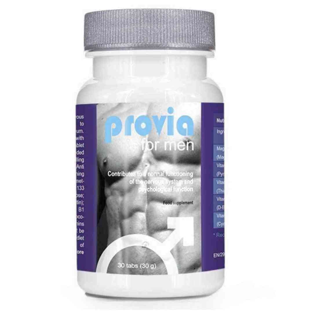 Provia è un potenziatore energetico per uomini, ricco di vitamine B1, B6, B8, B12 e Magnesio. Questo favorisce il corretto funzionamento del sistema nervoso, le prestazioni fisiche e il benessere mentale, influenzando positivamente la libido e la capacità di erezione. Questo integratore porta il benessere generale a un nuovo livello, stimola la libido e aumenta la potenza sessuale. Questi unici compresse contengono una combinazione equilibrata di Magnesio e diverse vitamine B: