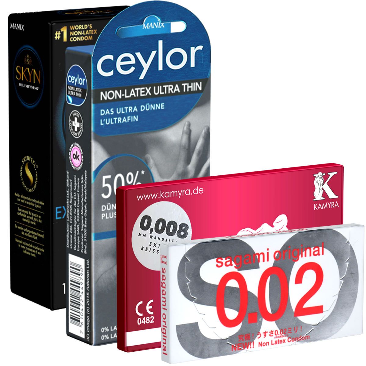 Ceylor «Non-Latex»: 6 preservativi ultrasottili senza lattice provenienti dalla Svizzera, noti per la loro qualità.