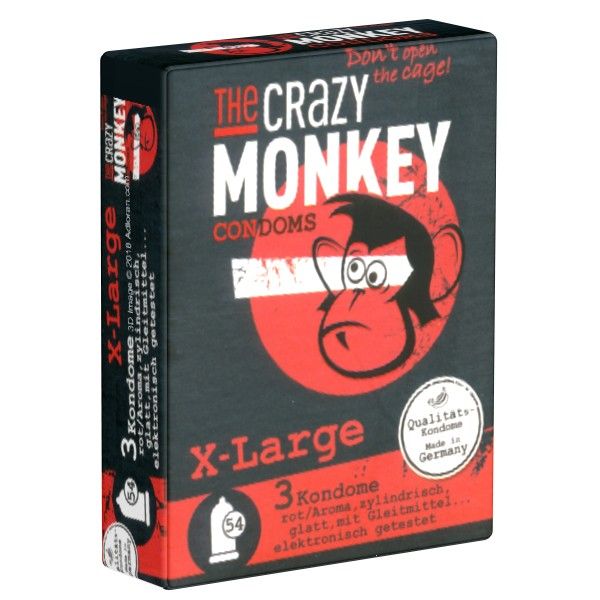 I preservativi CRAZY MONKEY X-Large hanno una larghezza nominale di 54 mm. Corrispondono quindi alla taglia XL. I preservativi CRAZY MONKEY sono prodotti in Germania.