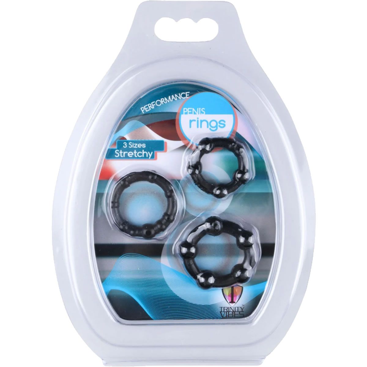 Prova un nuovo livello di intimità con un prodotto progettato per migliorare e prolungare la tua esperienza. Questo set di tre anelli fallici neri è la scelta ideale per chi desidera migliorare le proprie prestazioni. Ogni anello è disponibile in una misura unica: 3,2 cm, 3,8 cm e 5 cm di diametro, per garantire una vestibilità personalizzata.