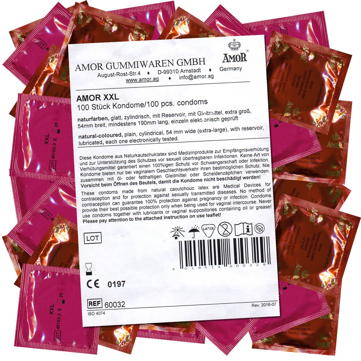 Il preservativo Amor XXL in confezione maxi da 100 pezzi offre una soluzione comoda per gli uomini che hanno bisogno di più spazio. La vestibilità generosa con una larghezza di 54 mm e una lunghezza di 190 mm garantisce una calzata confortevole e una sicurezza affidabile. Realizzato in lattice di gomma naturale e inumidito con olio di silicone, garantisce una scorrevolezza fluida e riduce l'attrito durante l'uso. La forma cilindrica con serbatoio garantisce ulteriore protezione e impedisce lo scivolamento.