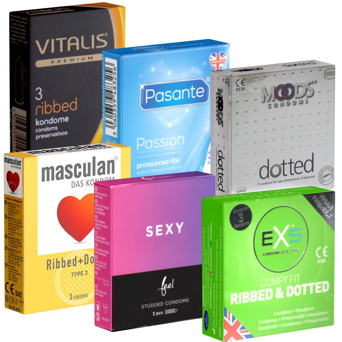Kondomotheke® Peaks & Valleys No.1 SIXPACK offre una squisita selezione di preservativi con nervature e borchie, studiati per la massima stimolazione e rapporti sessuali intensi. Questo set comprende 18 preservativi in sei diverse varianti, ciascuna con texture uniche per un'esperienza varia e passionale.